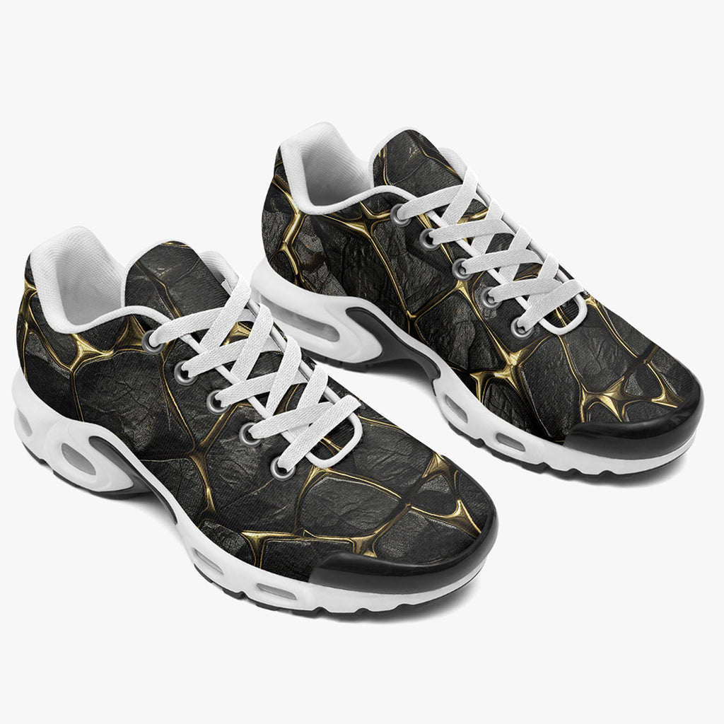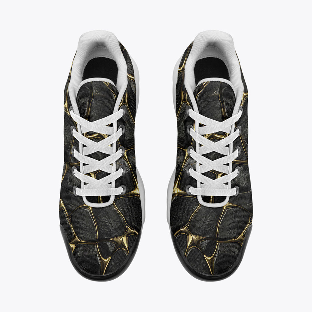 Air Cushion Sneakers Black and Gold Stone Mesh