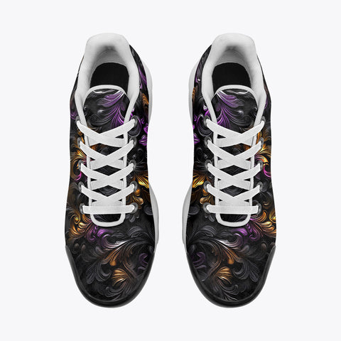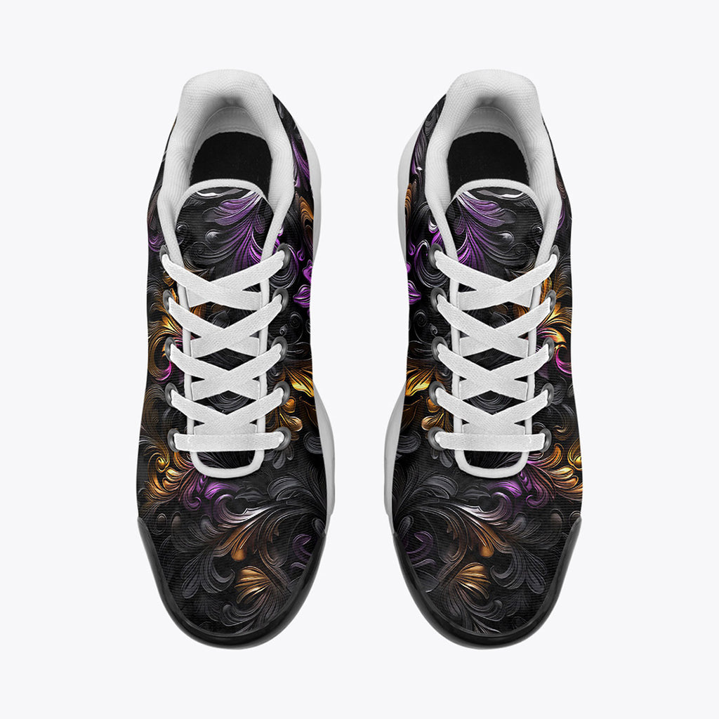Air Cushion Sneakers Black and Purple Swirls