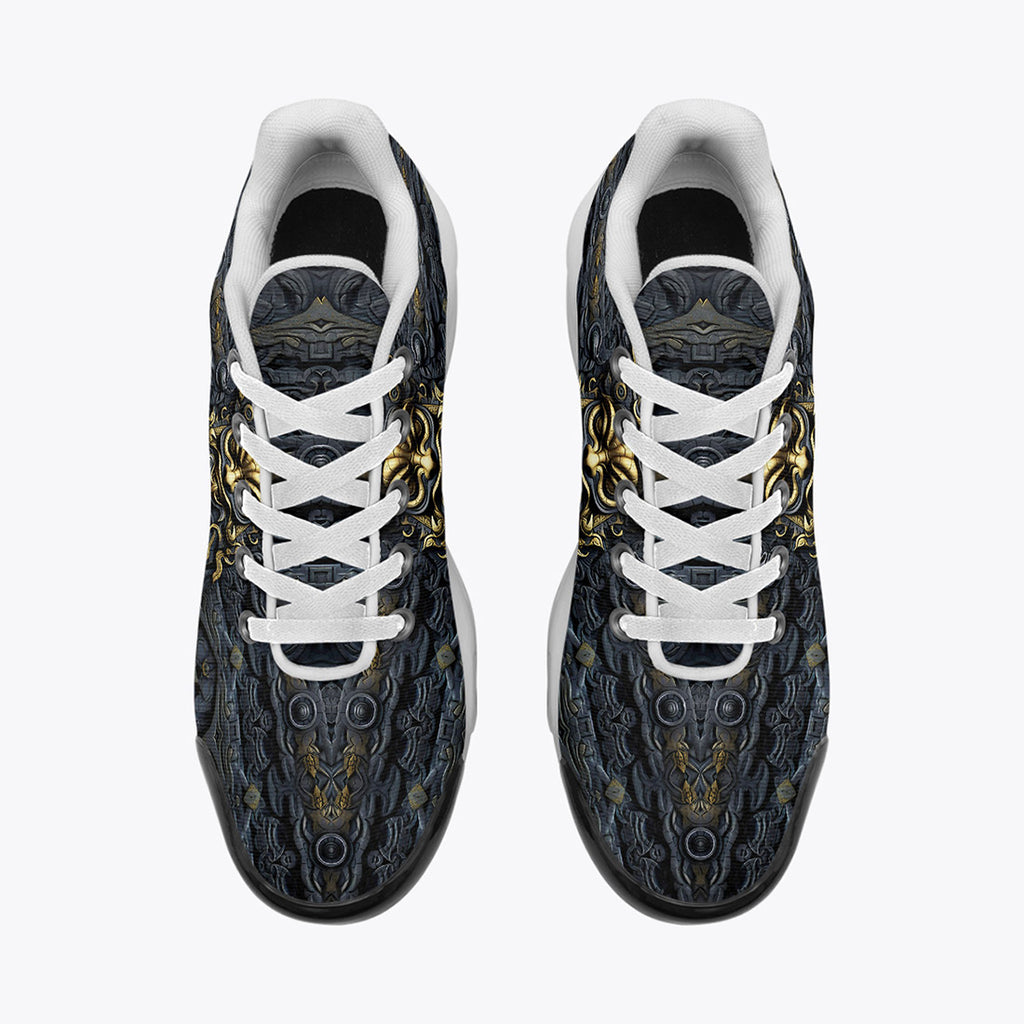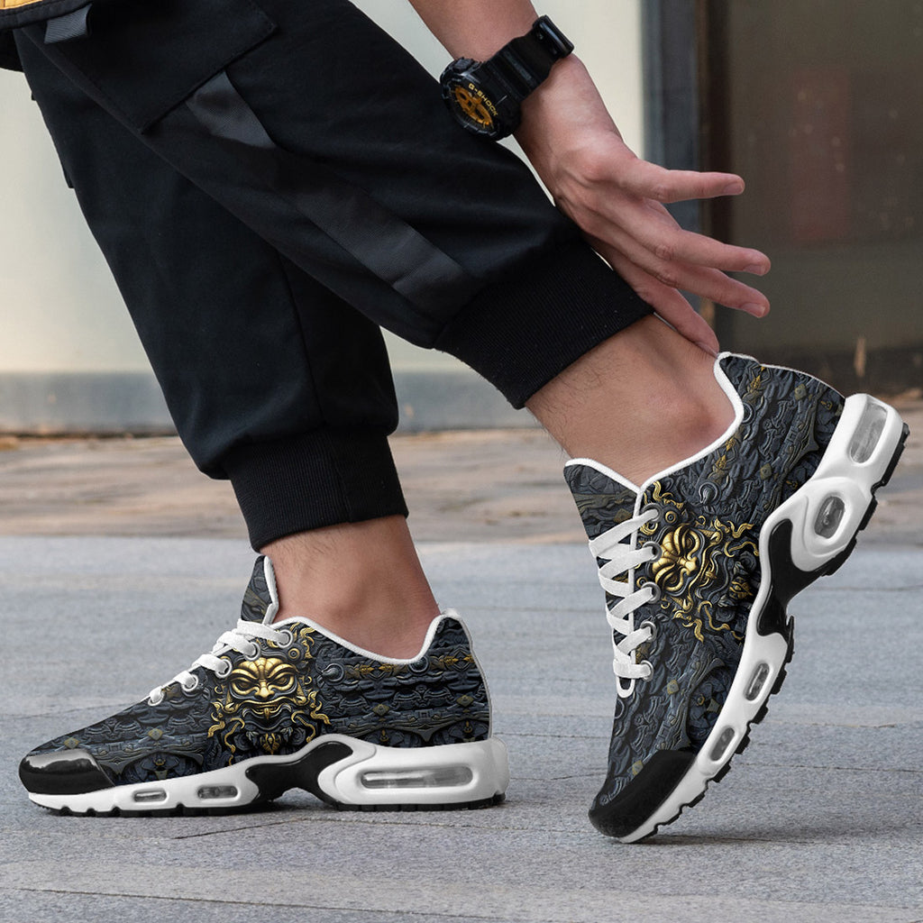 Air Cushion Sneakers Gold and Black Ornate Mask