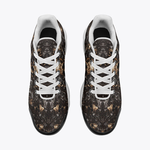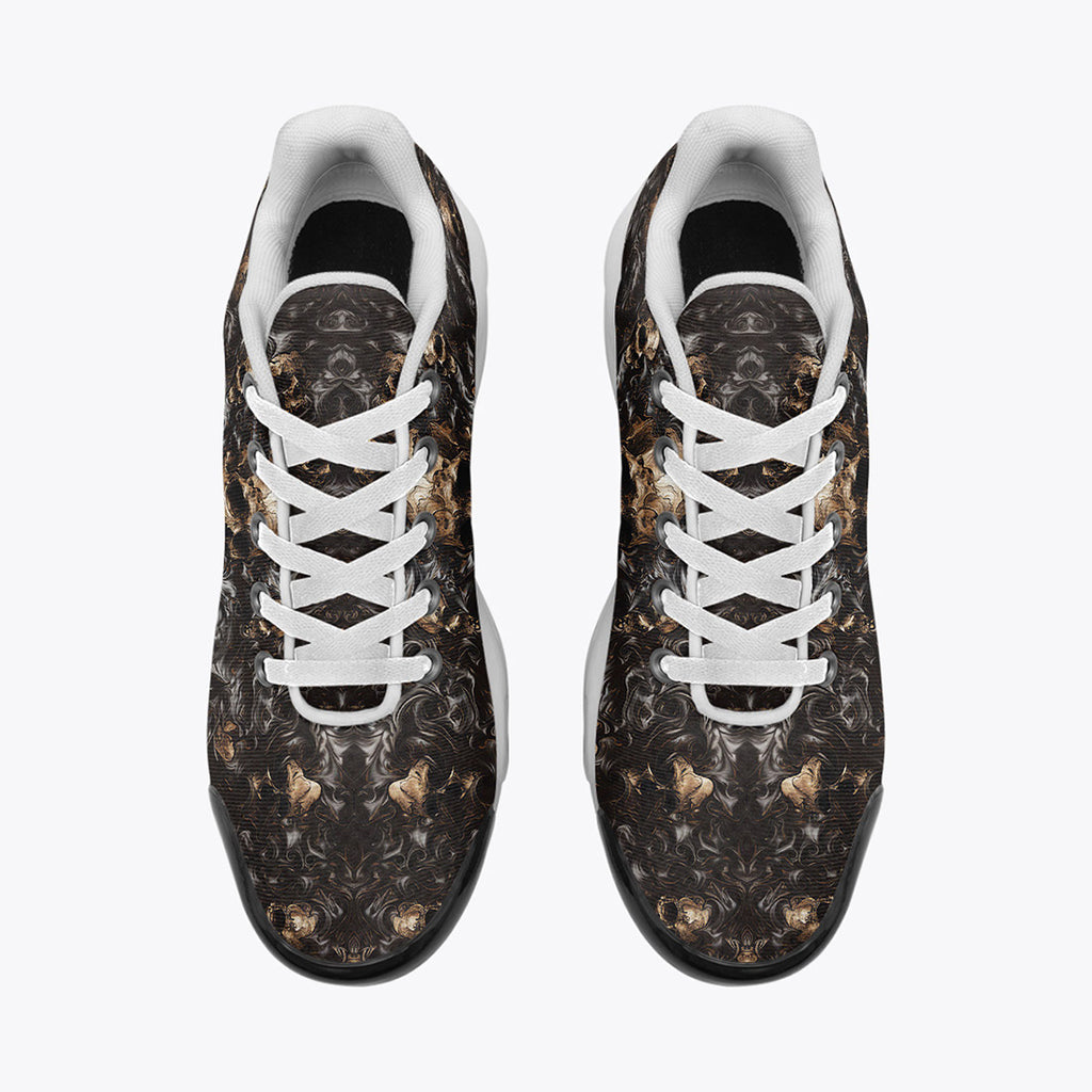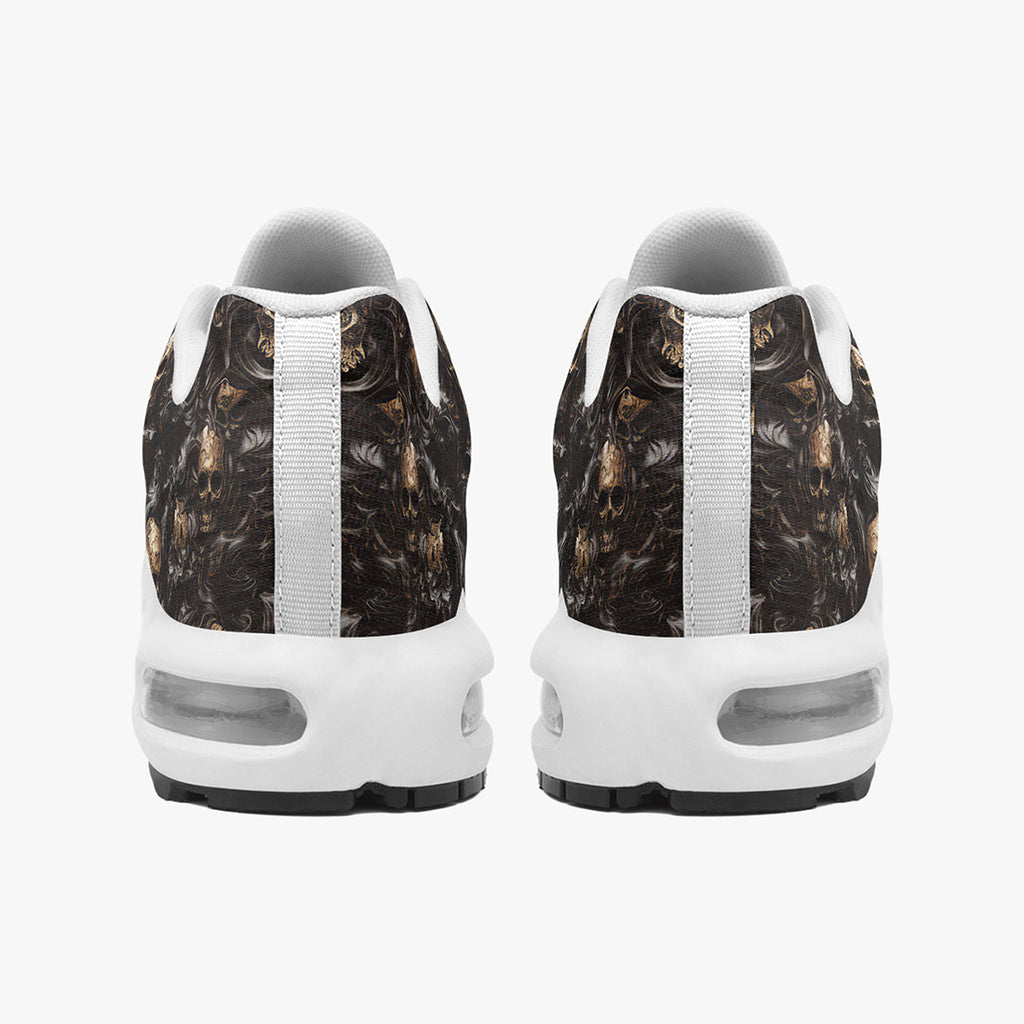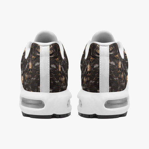 Air Cushion Sneakers Gold and Brown Skulls Art
