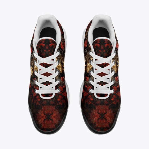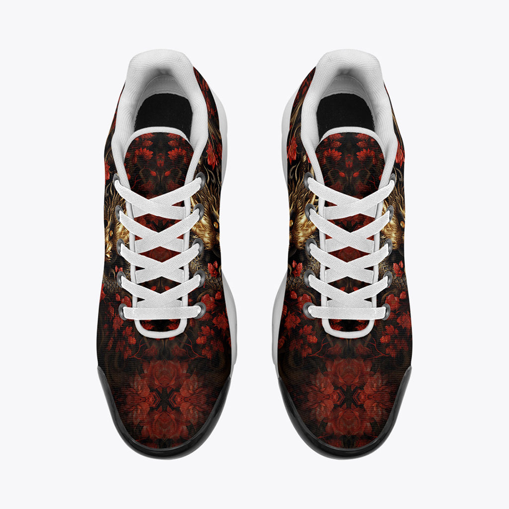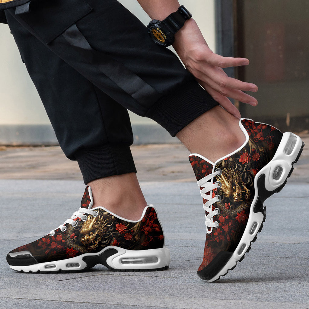 Air Cushion Sneakers Golden Dragon Red Flowers