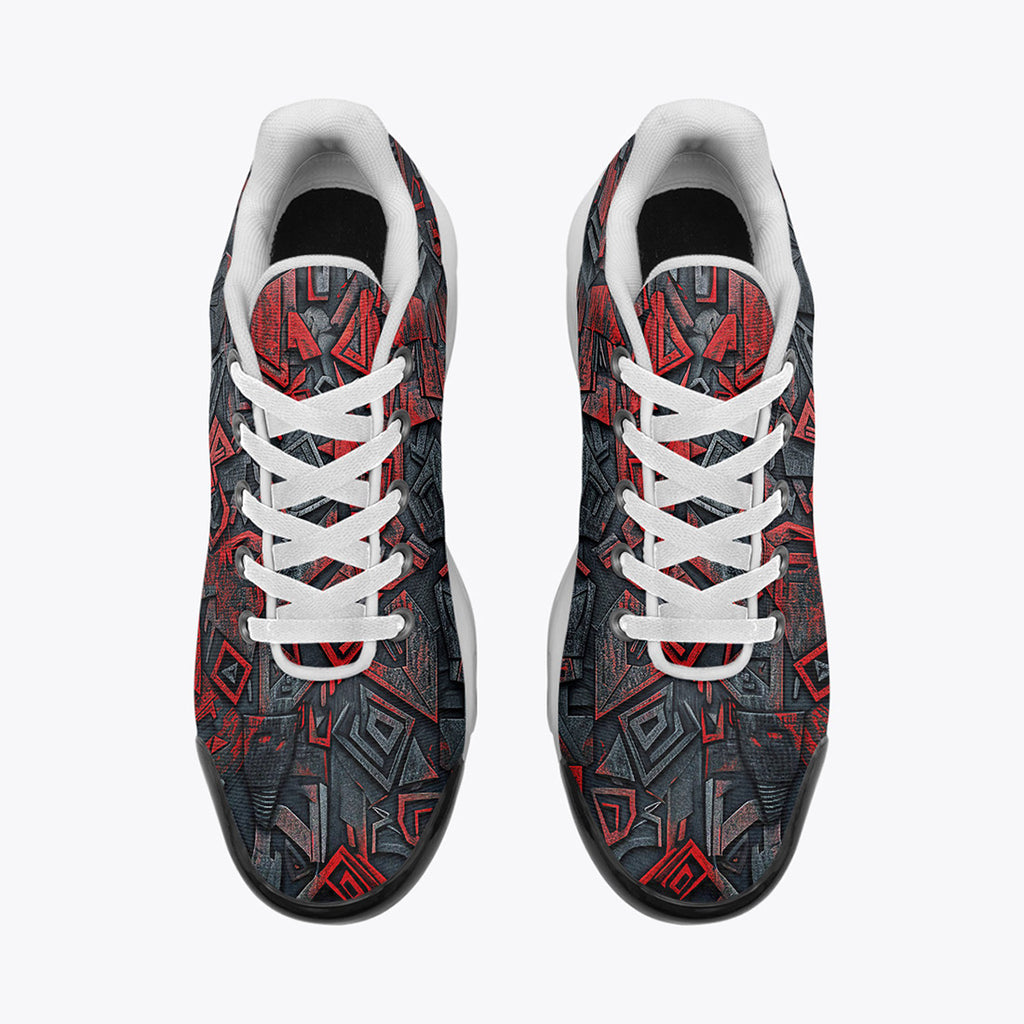 Air Cushion Sneakers Red and Black Geometric Abstraction