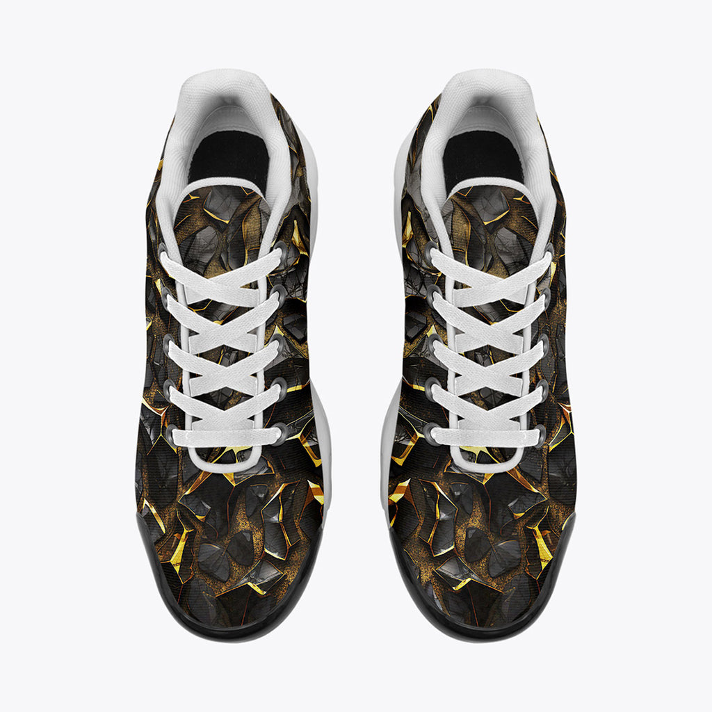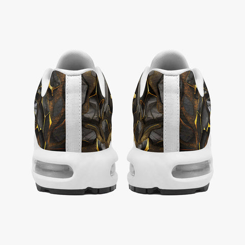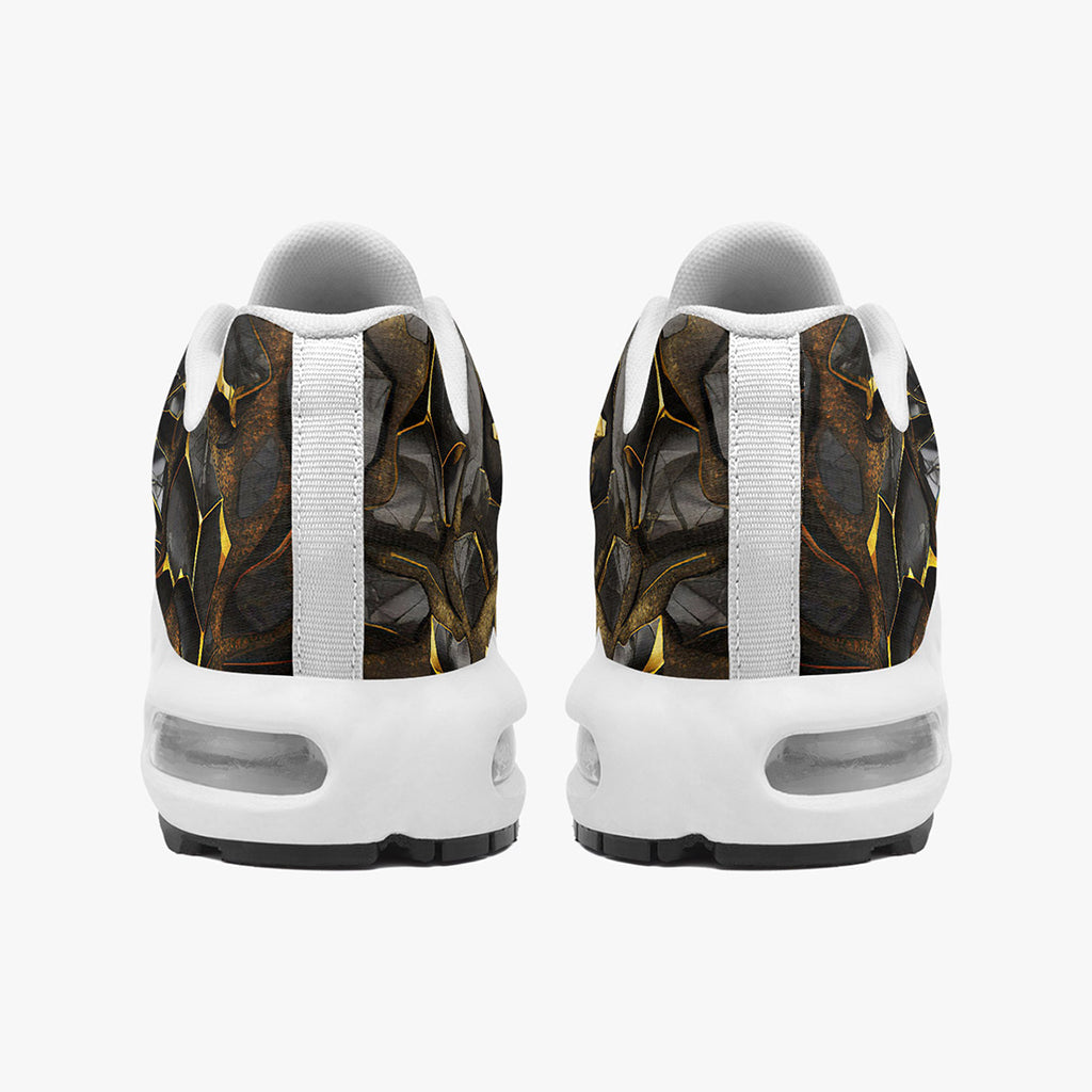 Air Cushion Sneakers Shiny Black and Golden Texture
