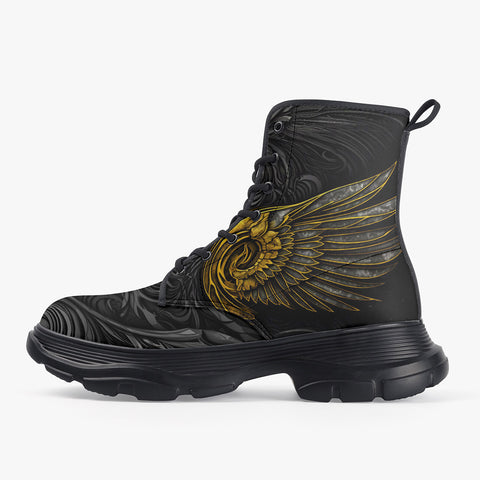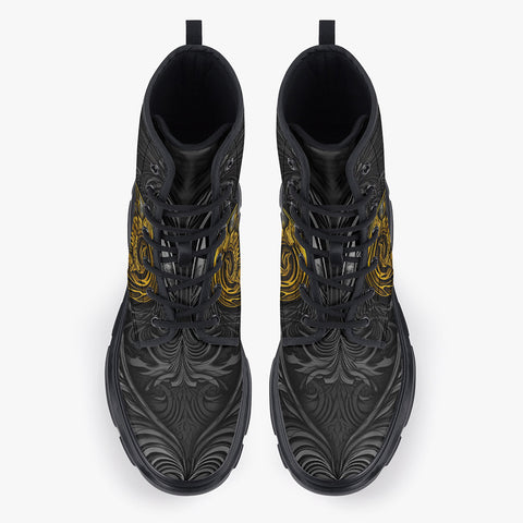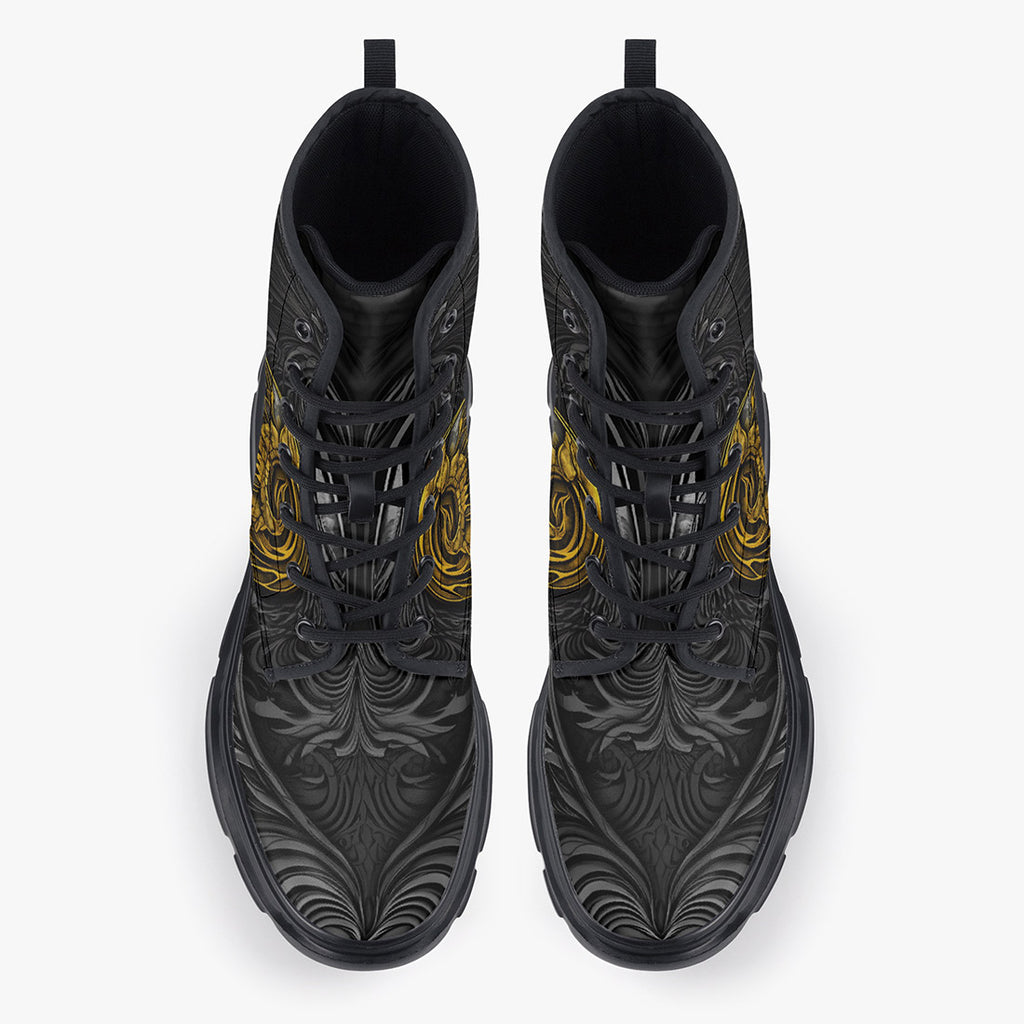 - Features a rounded toe construction and lace-up closure for a snug fit.