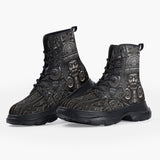 Casual Leather Chunky Boots Metal Mask Aztec Art