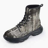 Casual Leather Chunky Boots Vintage Grungy Newspaper