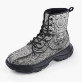 Casual Leather Chunky Boots White 3D Aztec Temple Ornament