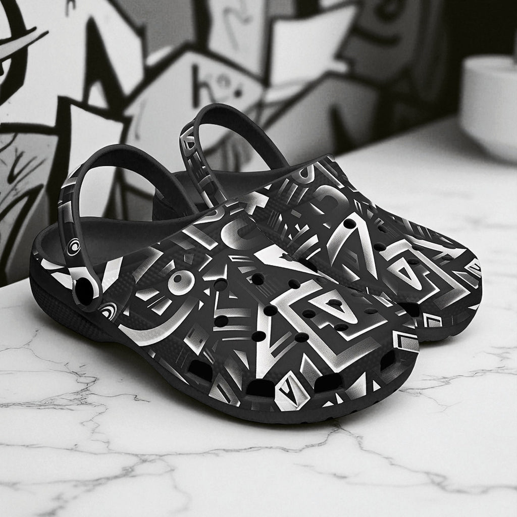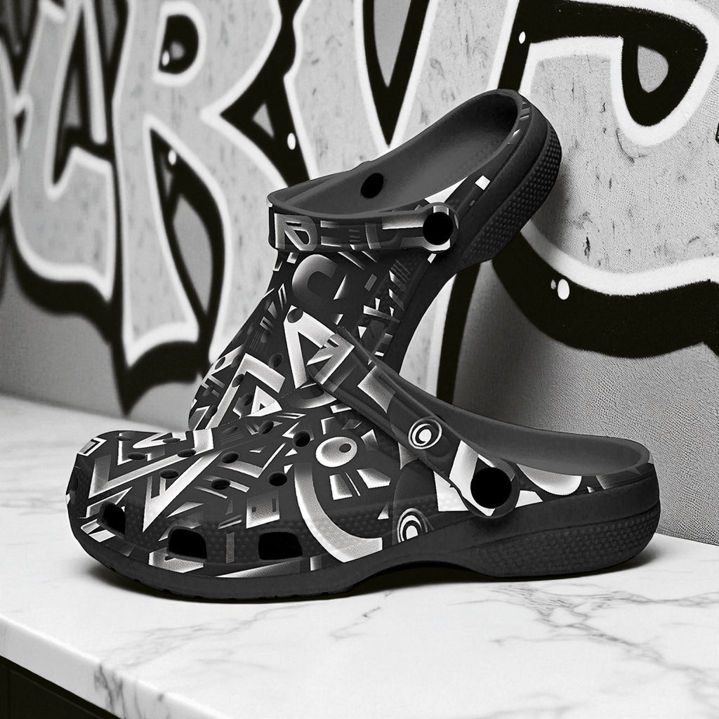 Classic Clogs Black and White Letters Art