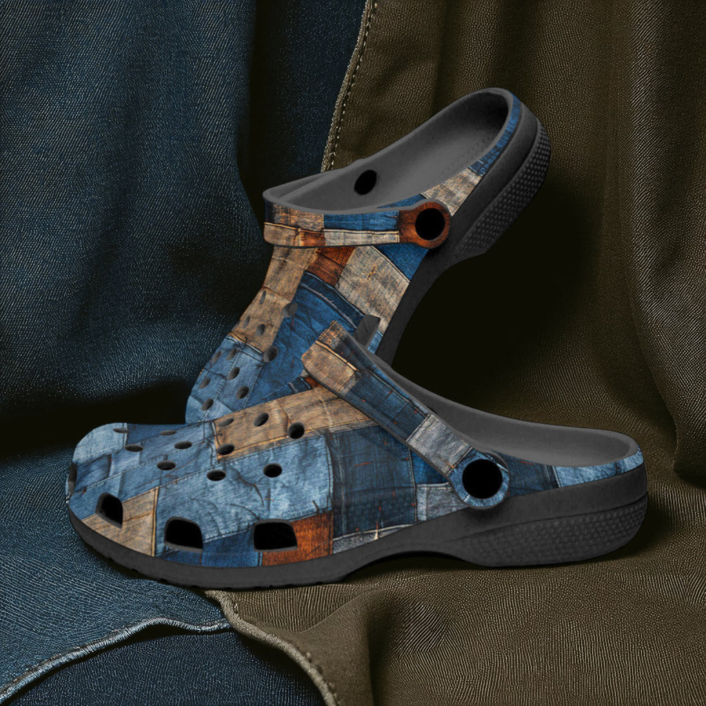 Classic Clogs Blue and Brown Denim Patchwork