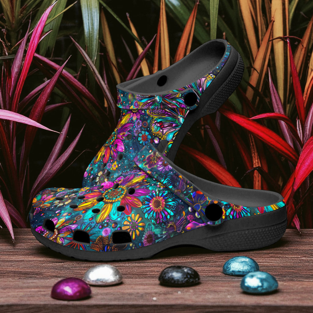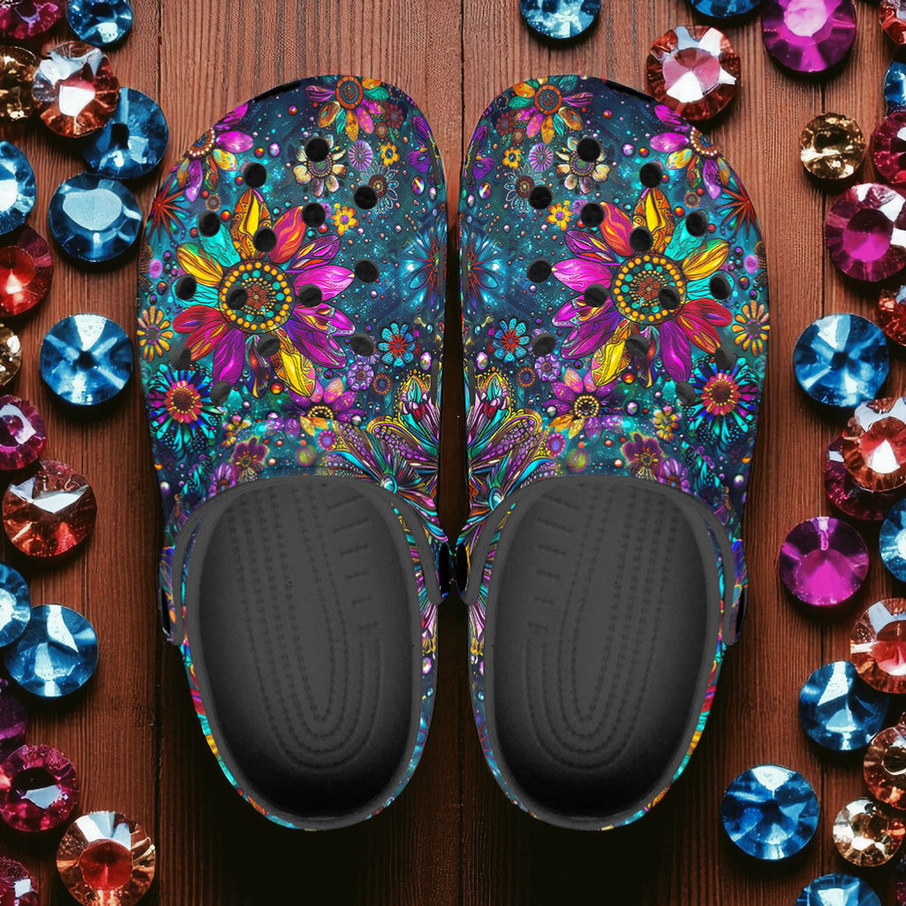 Classic Clogs Colorful Psychedelic Flower and Gemstones