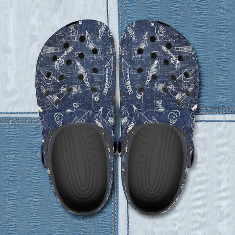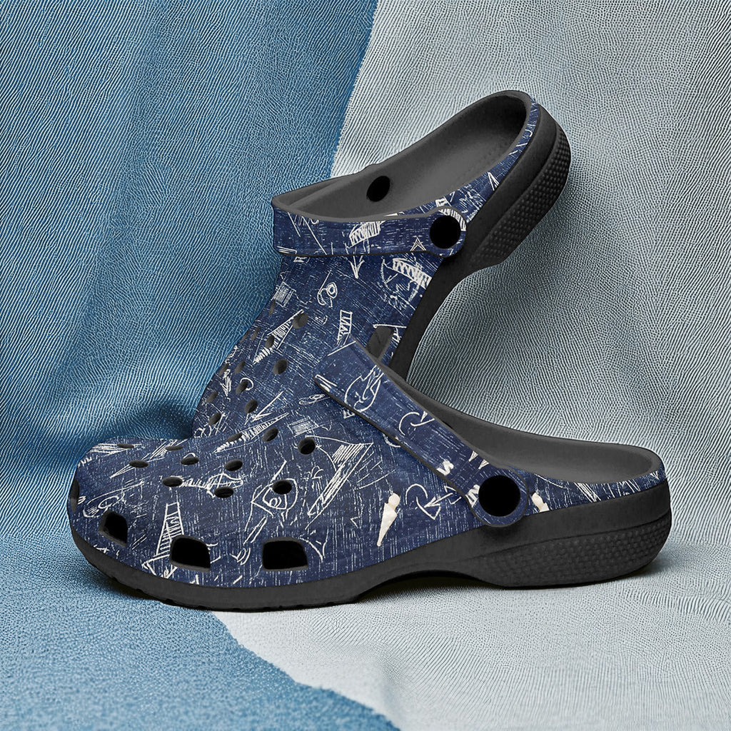 Classic Clogs Navy Blue Denim Fabric White Doodles
