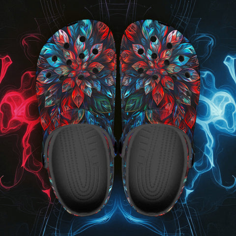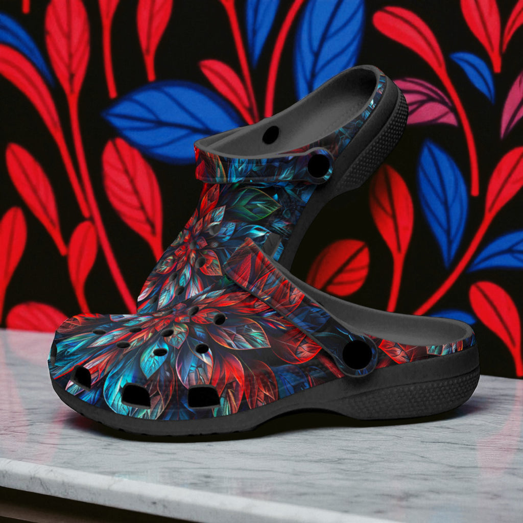Classic Clogs Neon Leaves Vibrant Reds and Blue
