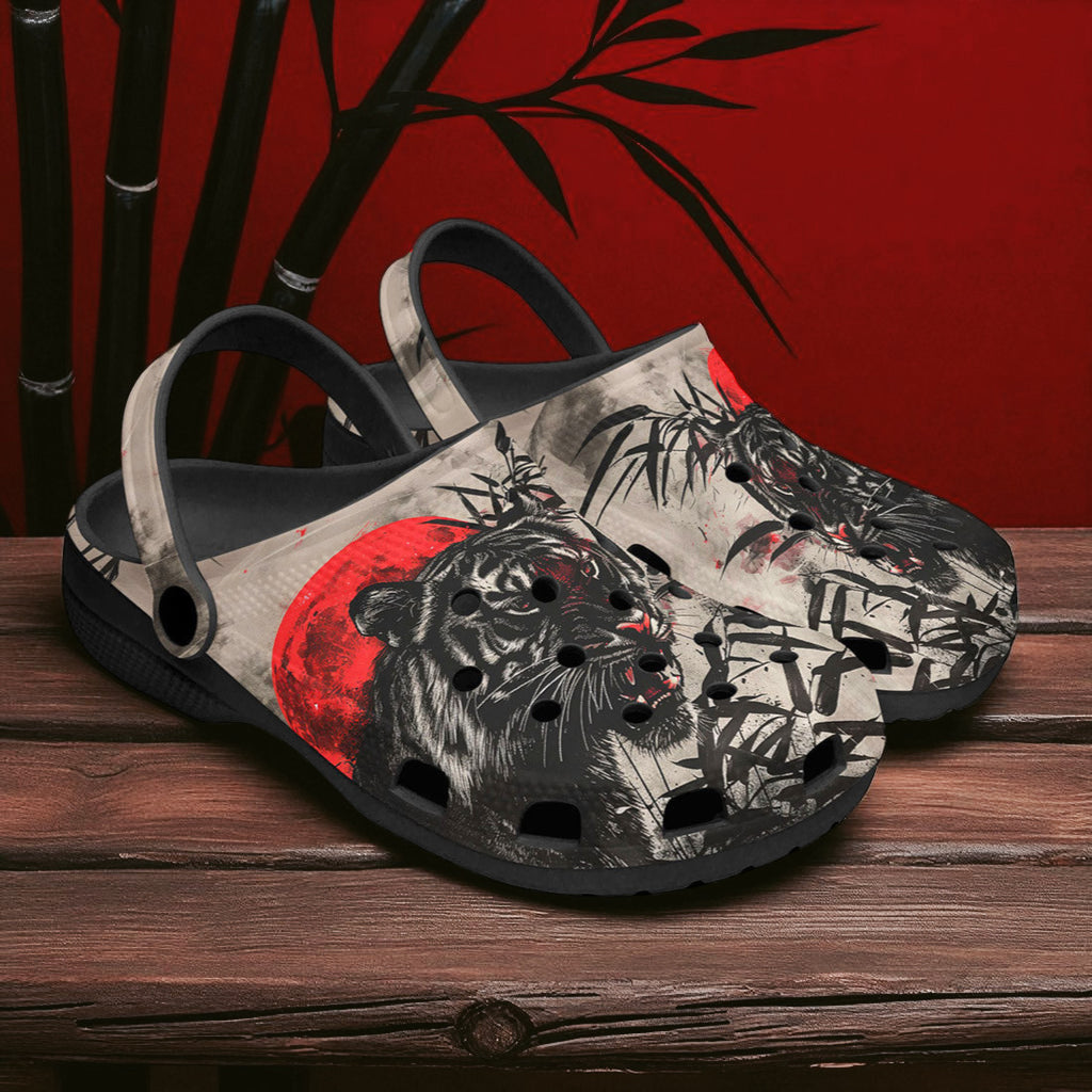 Classic Clogs Tiger Red Moon Bamboo Japanese Art