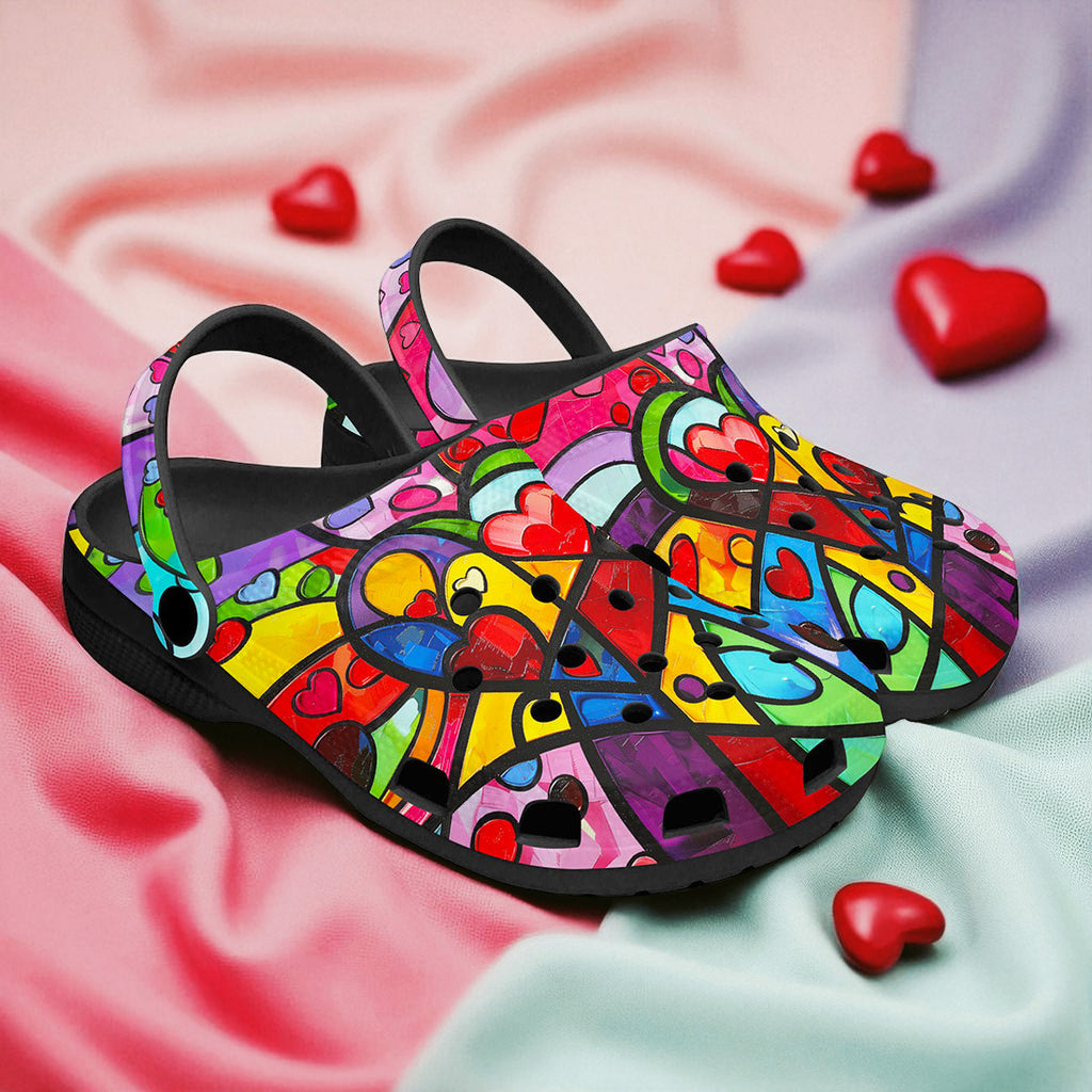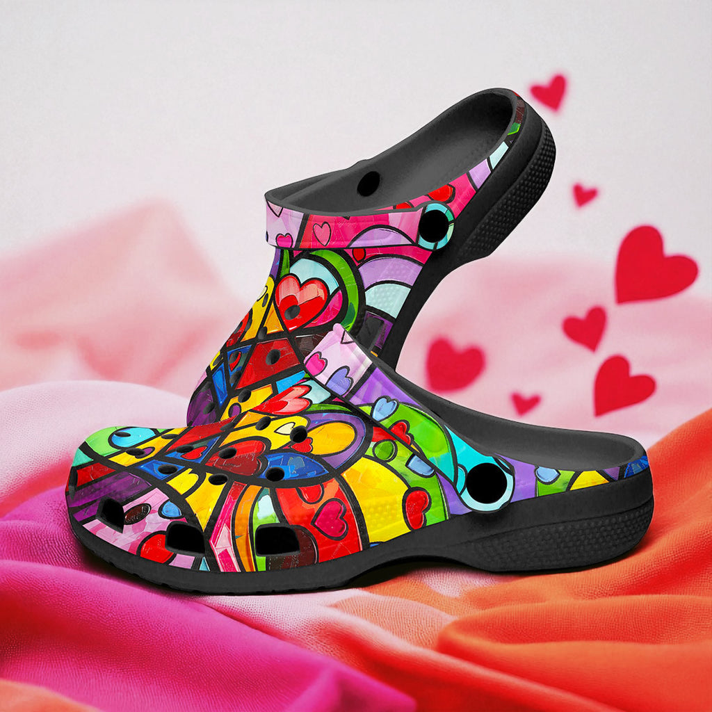 Classic Clogs Vibrant Colorful Painting of Hearts