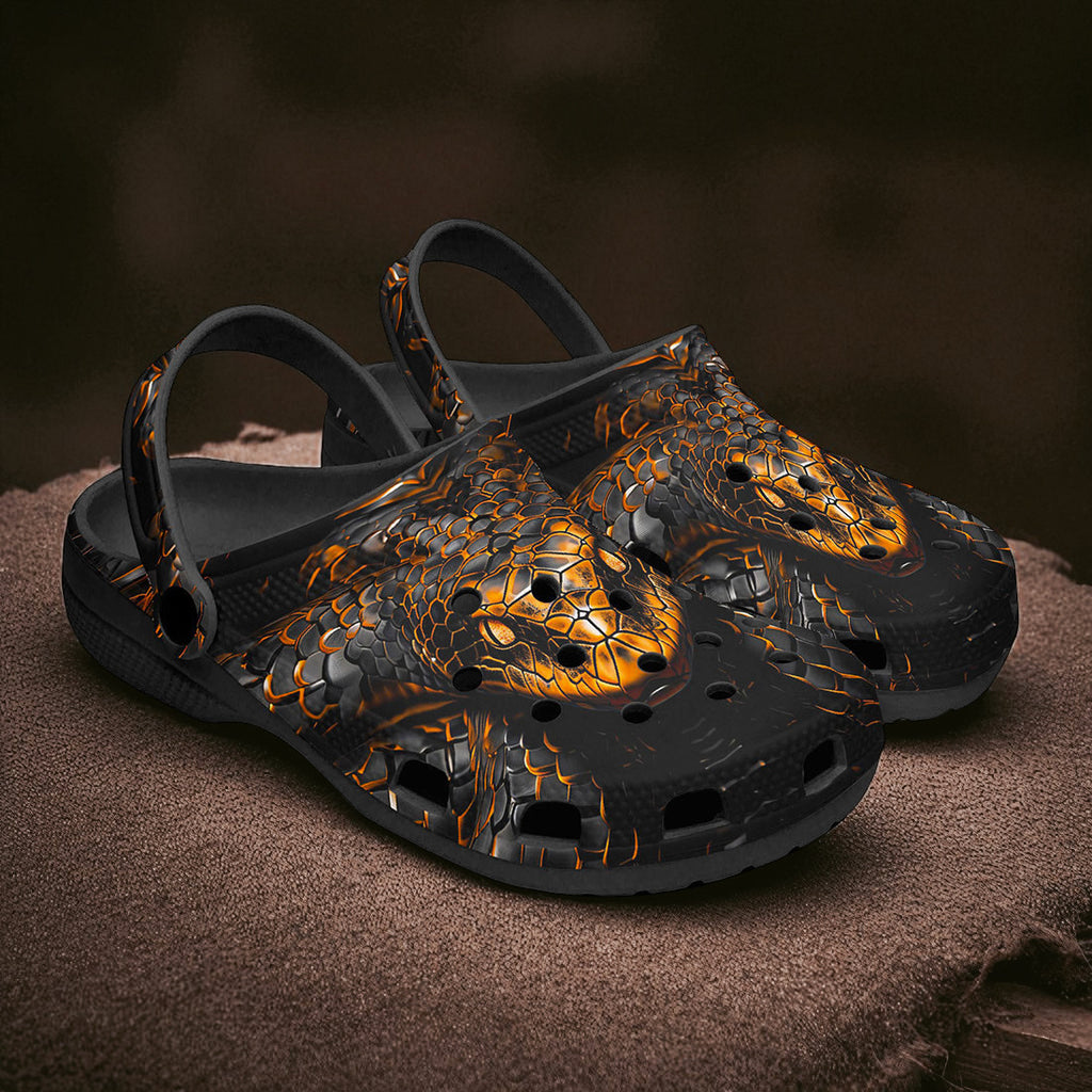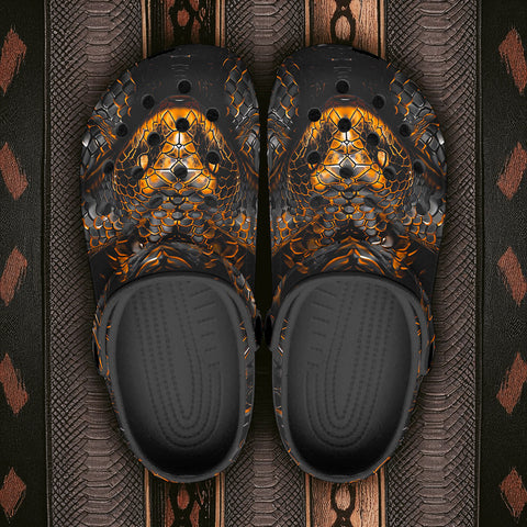 Classic Clogs Gold and Black Snake Art