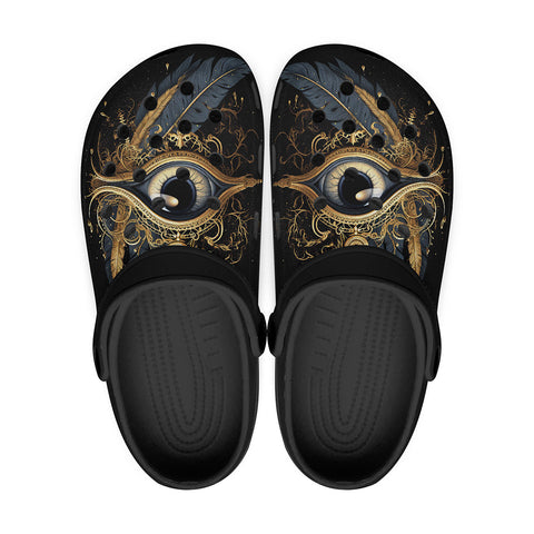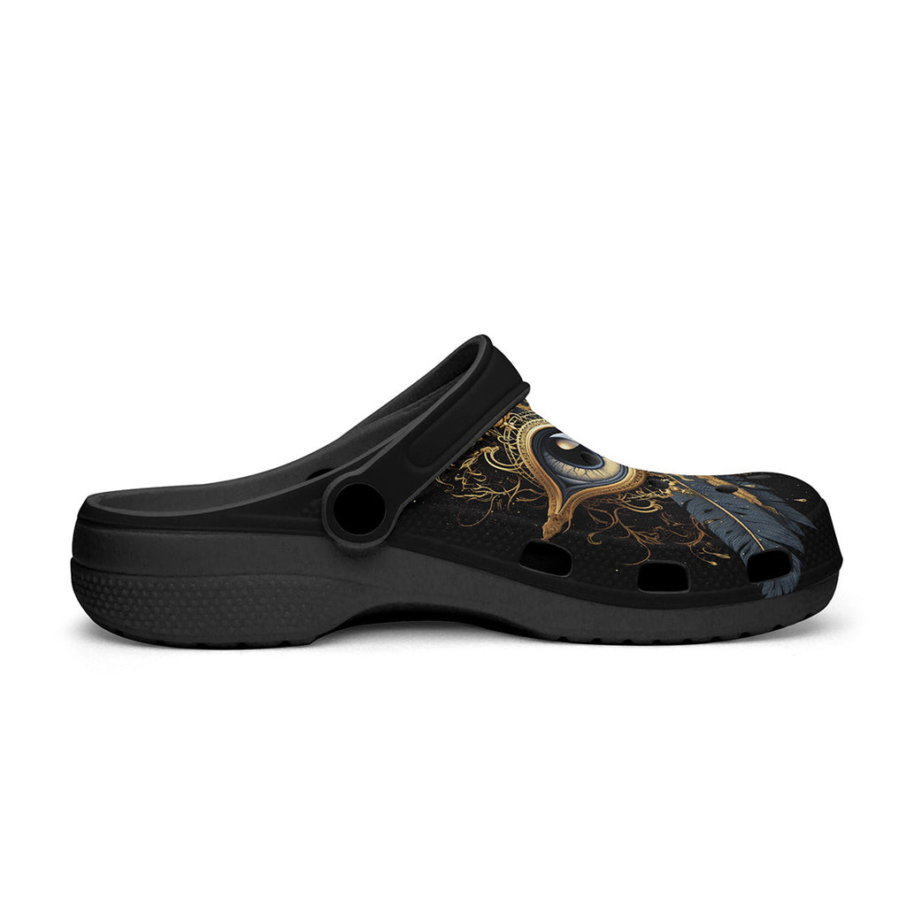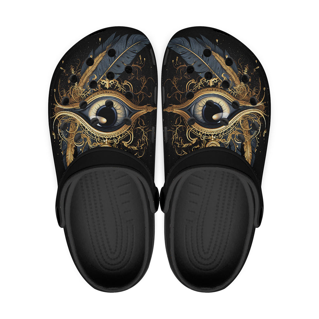 Classic Clogs Golden Eye with Feather Symbolism