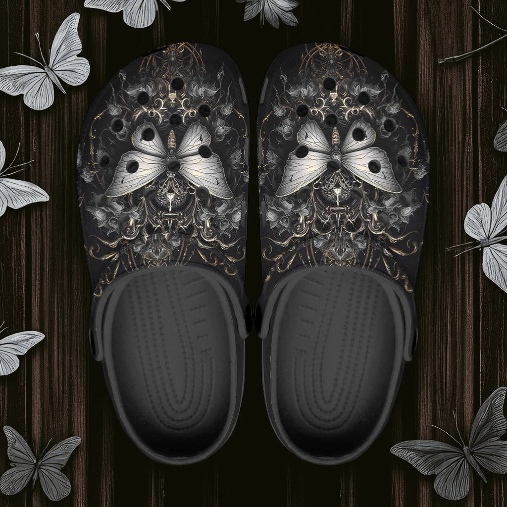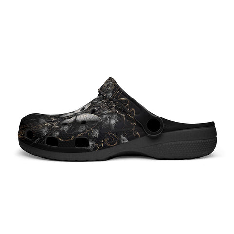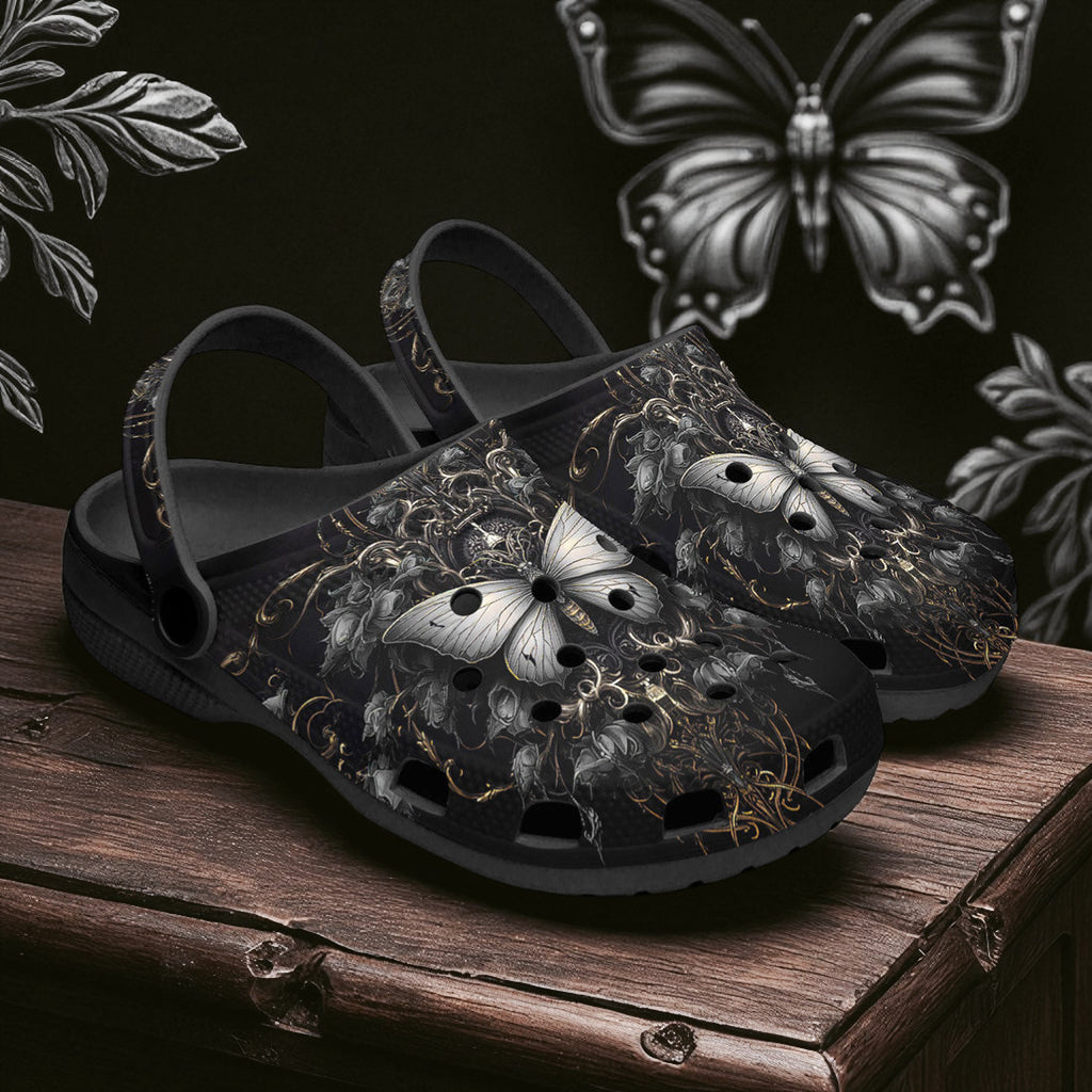 Classic Clogs Gothic Silver Butterfly And Flowers
