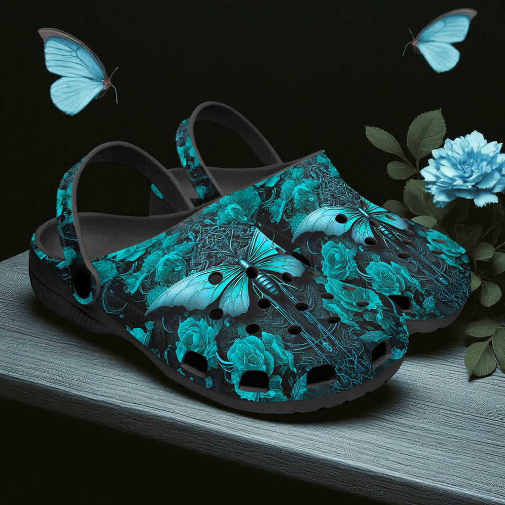 Classic Clogs Gothic Turquoise Butterfly And Flowers