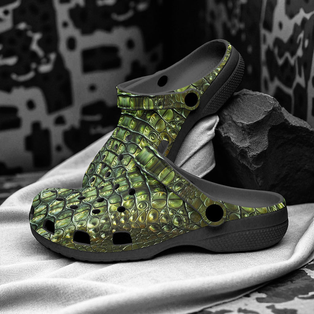 Classic Clogs Green Alligator Pattern Print