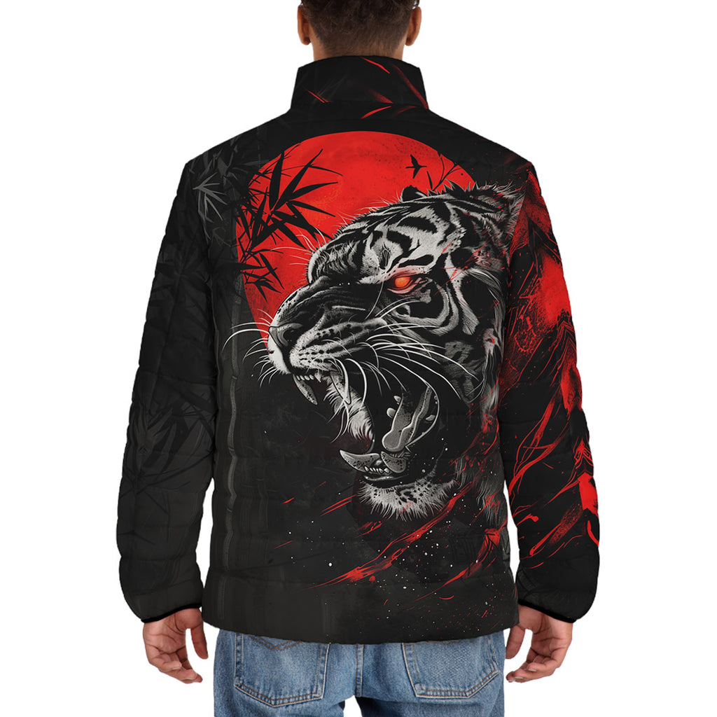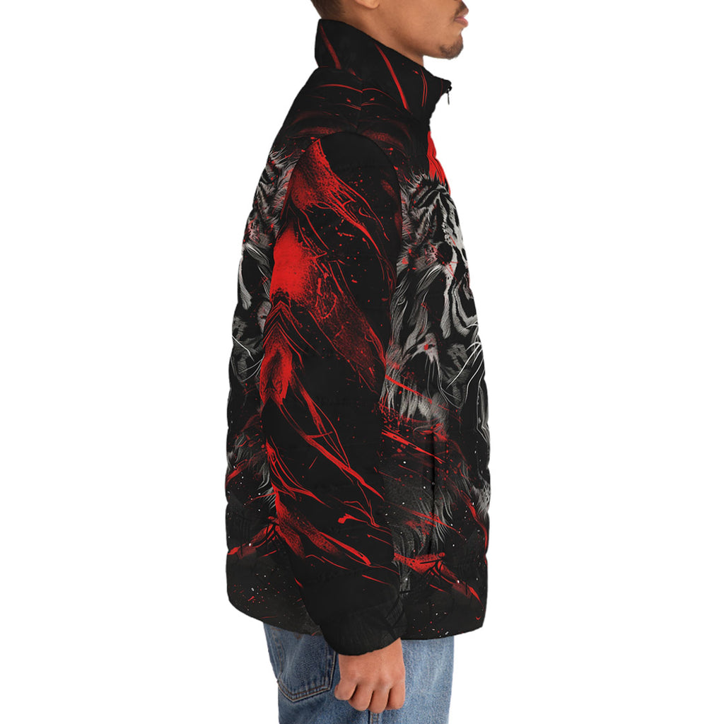 Down-Padded Puffer Jacket Angry Tiger Red Moon Jungle Art