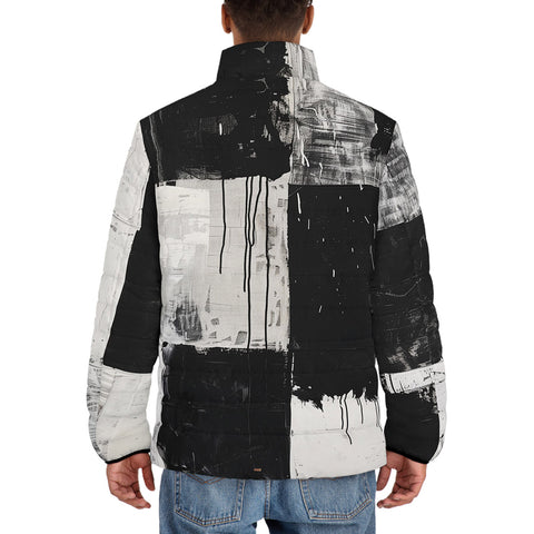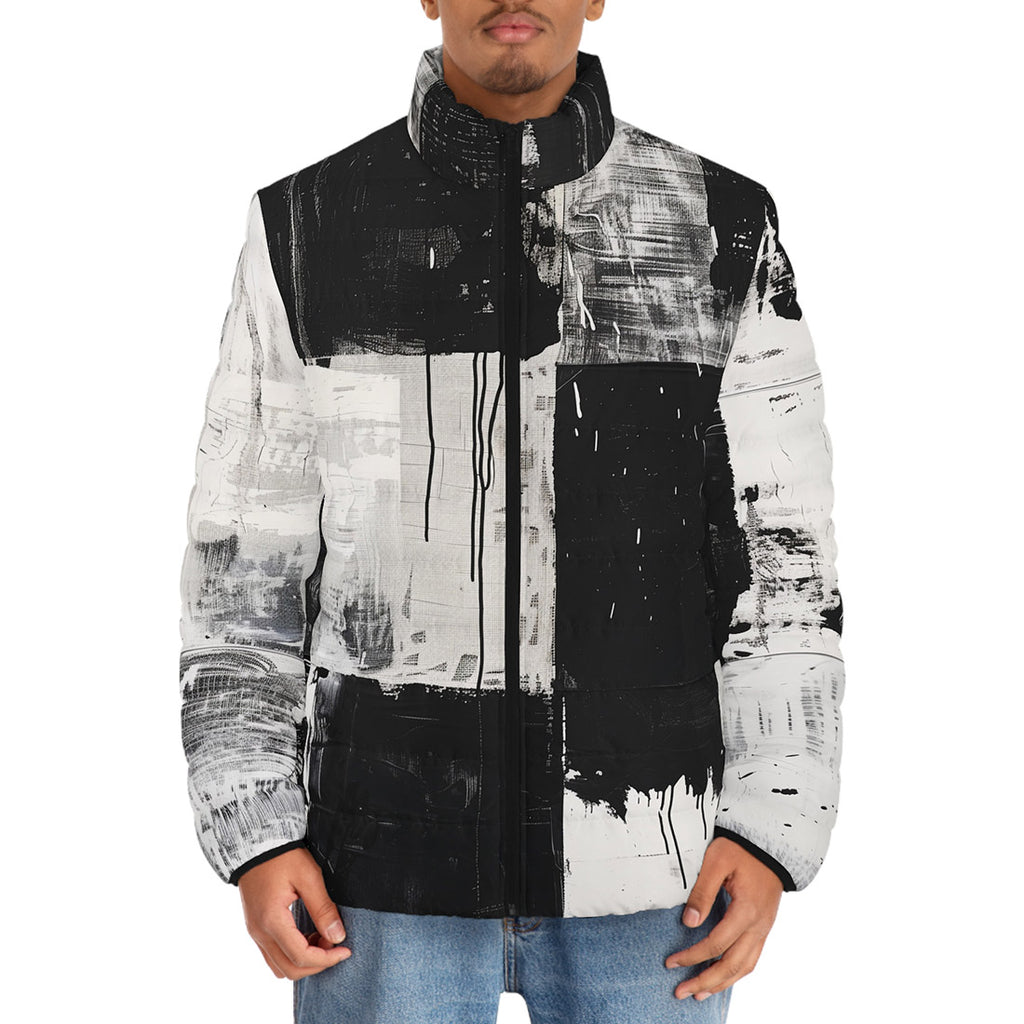 Down-Padded Puffer Jacket Black And White Modern Art Abstraction