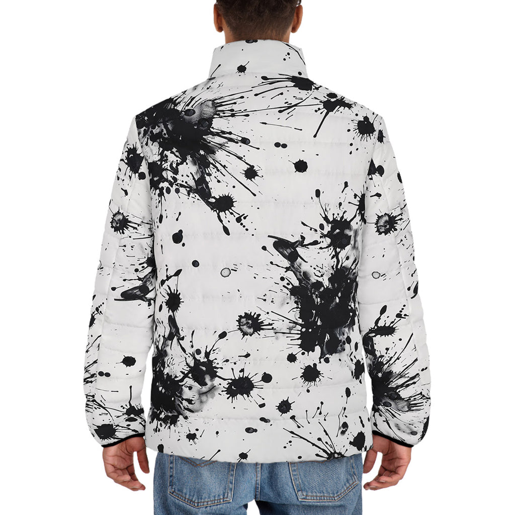 Down-Padded Puffer Jacket Black Ink Splashes And Dots