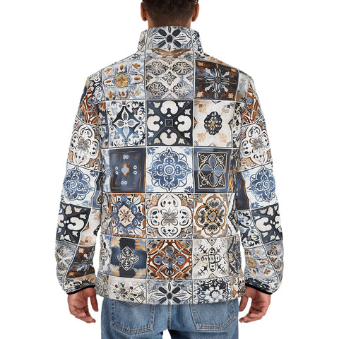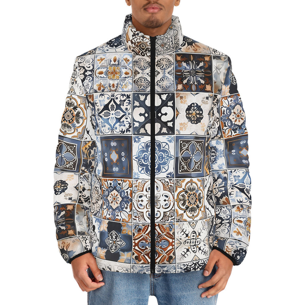 Down-Padded Puffer Jacket Ceramic Tiles Artwork