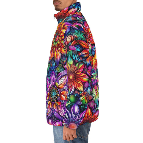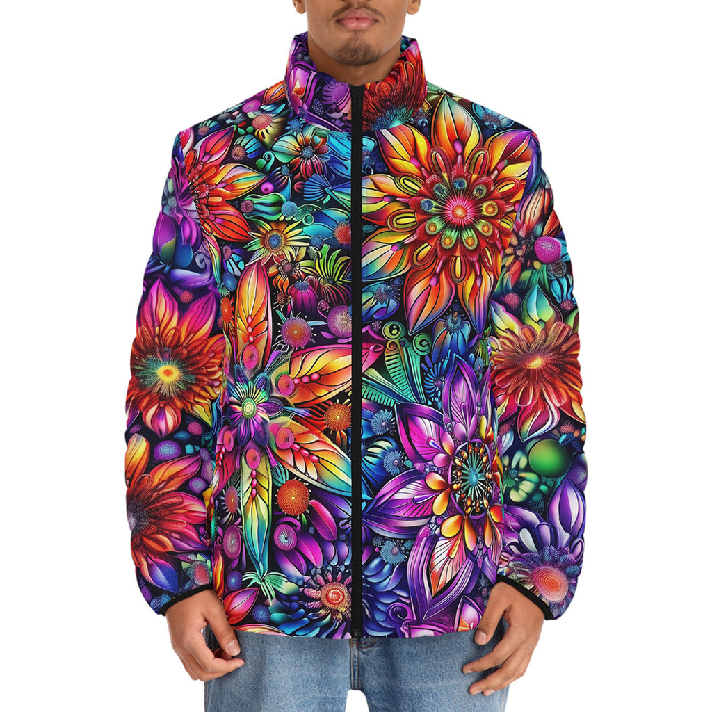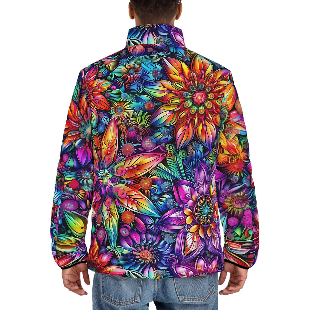 Down-Padded Puffer Jacket Colorful Flower designs and Crystals