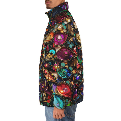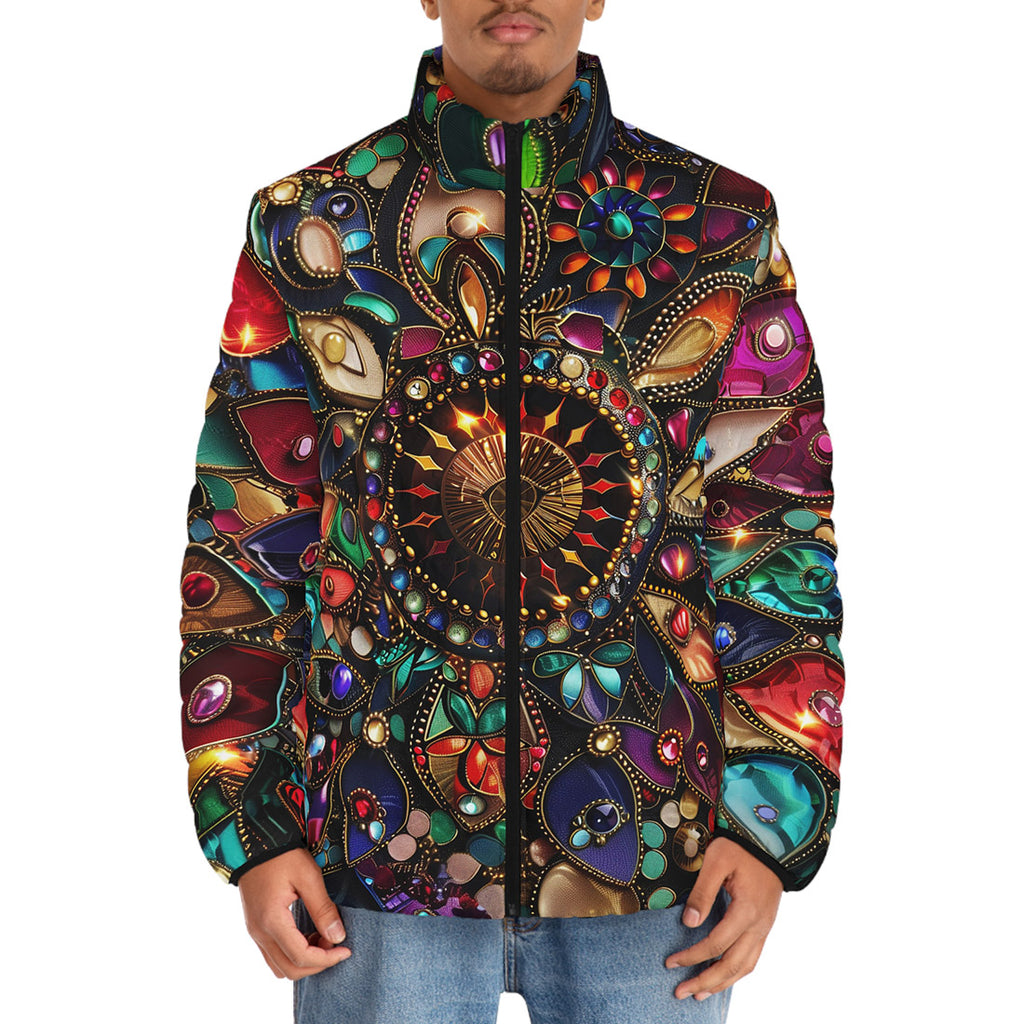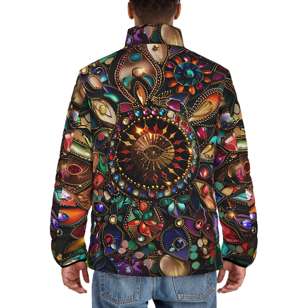 Down-Padded Puffer Jacket Colorful Mandala Jewels Art