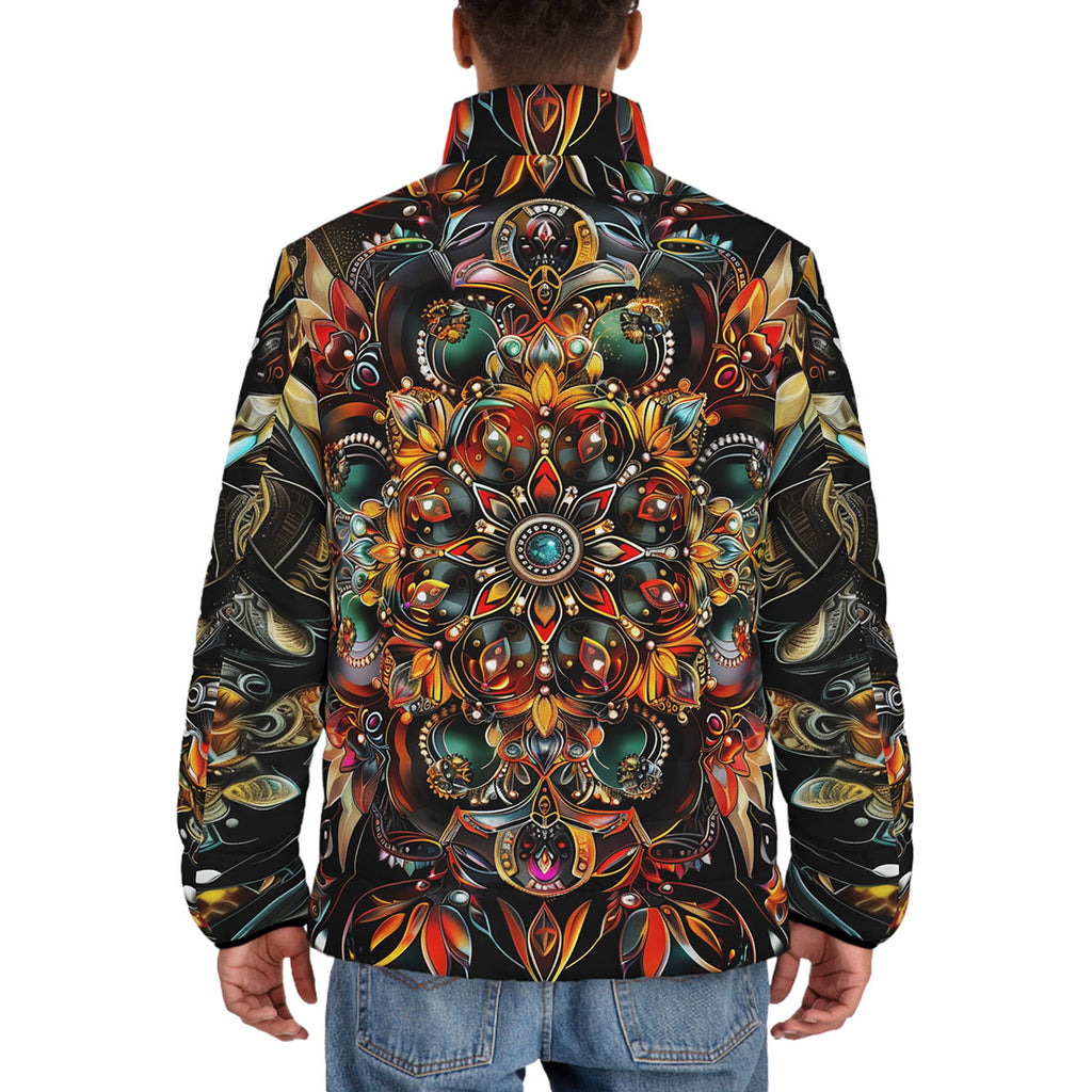 Down-Padded Puffer Jacket Colorful Mandala Pattern
