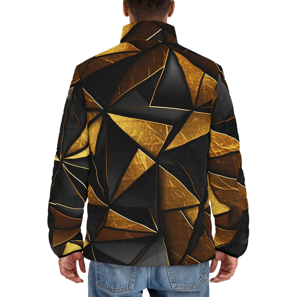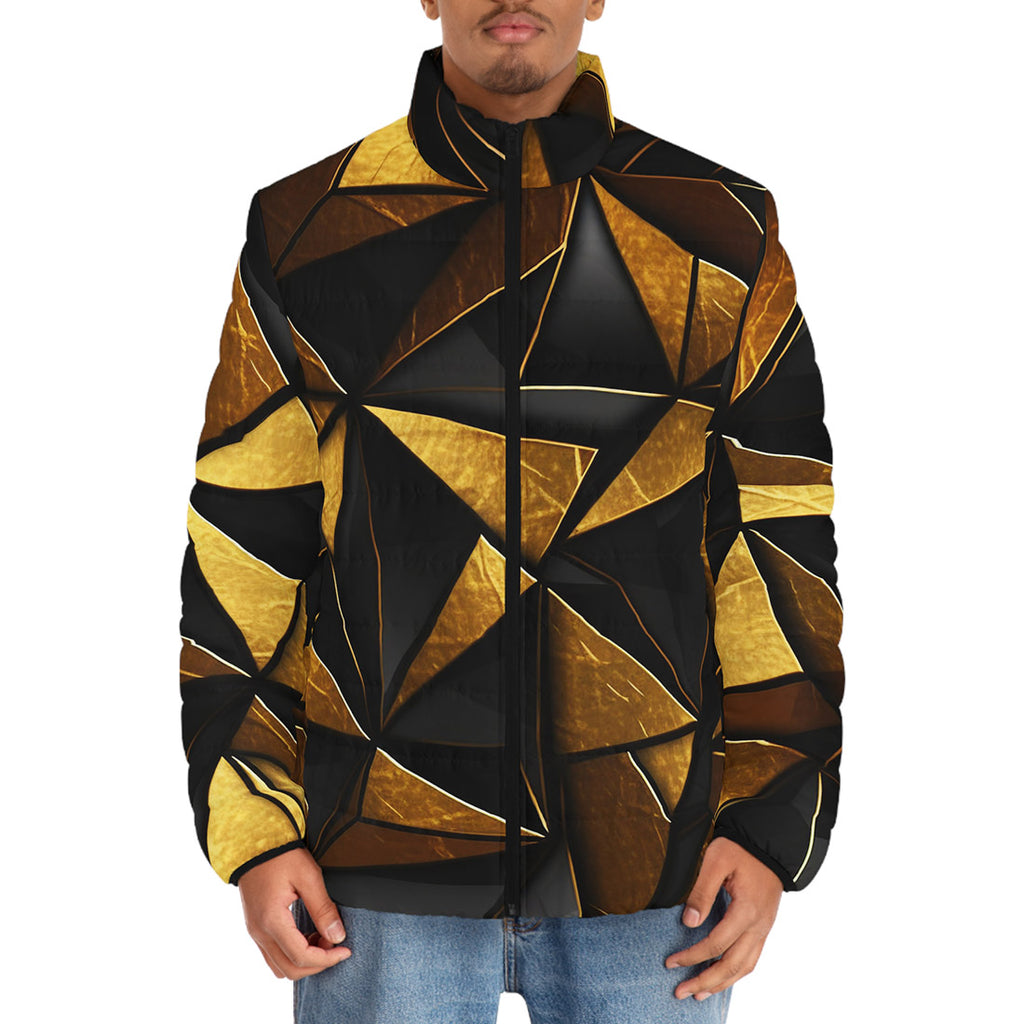 Down-Padded Puffer Jacket Gold and Black Triangles Artwork
