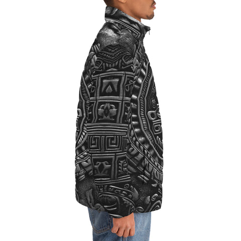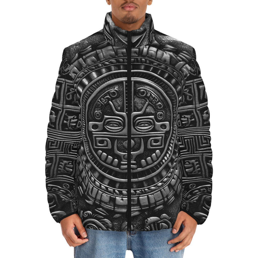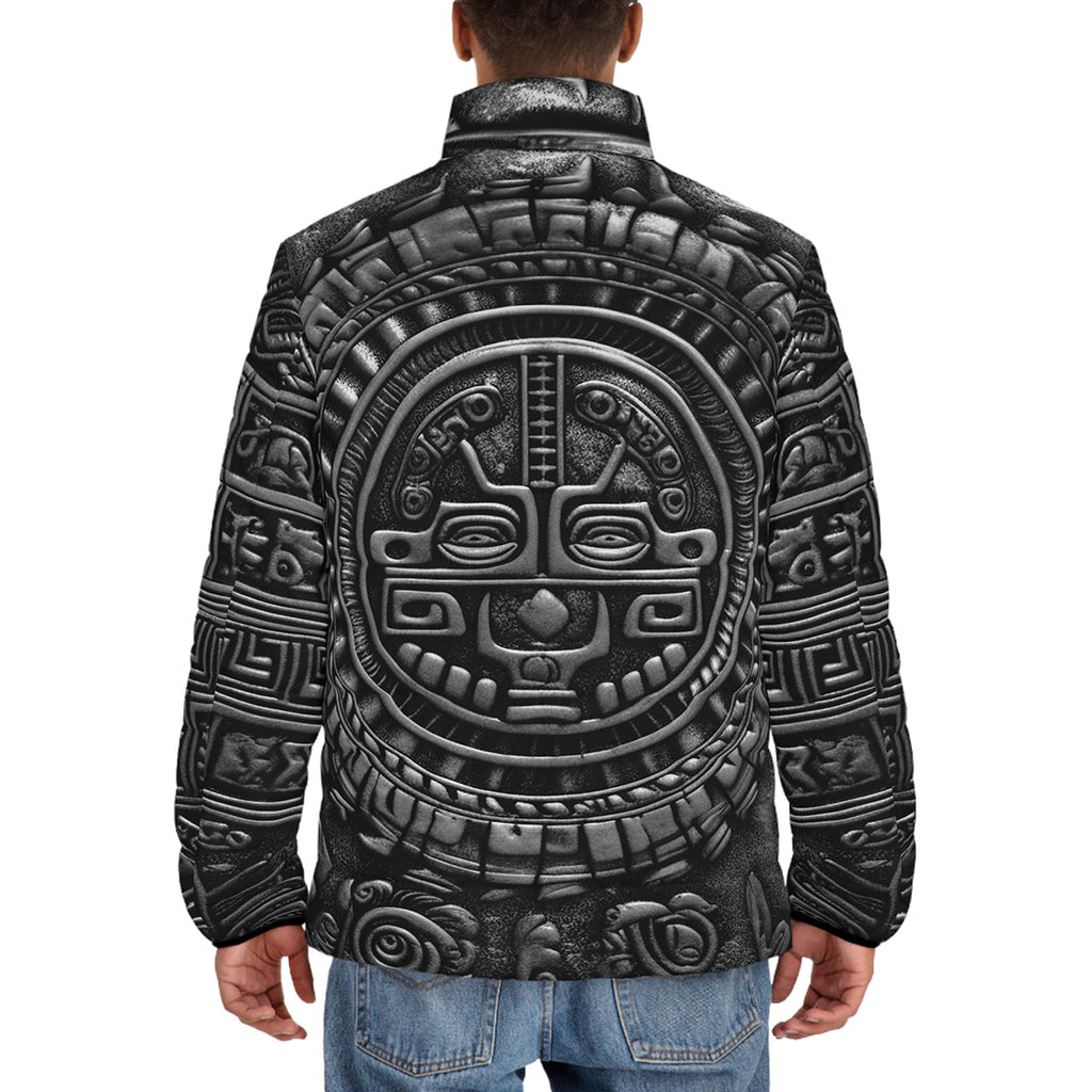 Down-Padded Puffer Jacket Golden Ancient Aztec Art