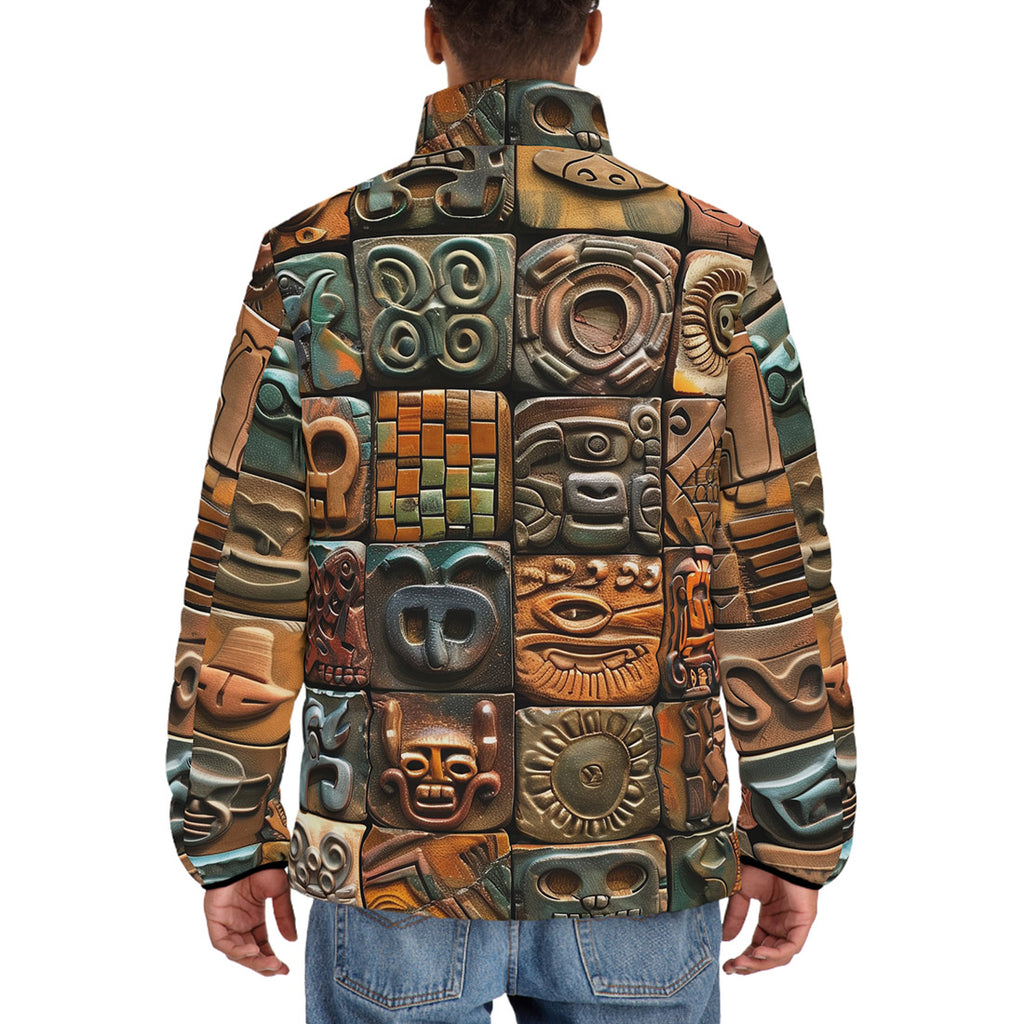 Down-Padded Puffer Jacket Mosaic Traditional Mayan Symbols