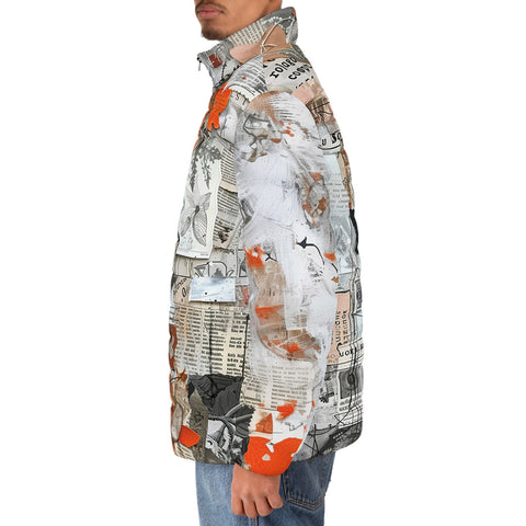 Down-Padded Puffer Jacket Pieces of Paper Fabric and Paint Splashes