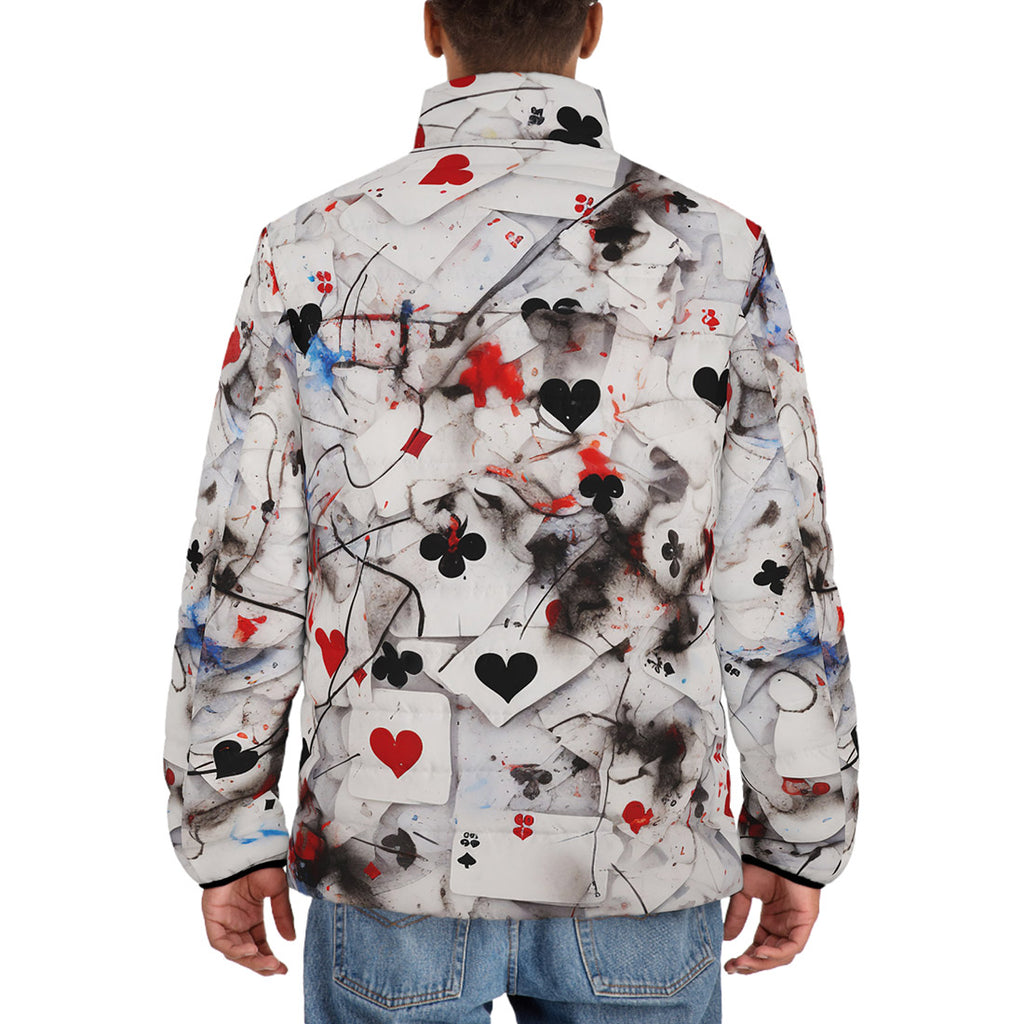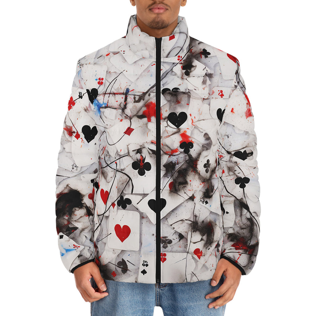 Down-Padded Puffer Jacket Playing Cards Abstraction