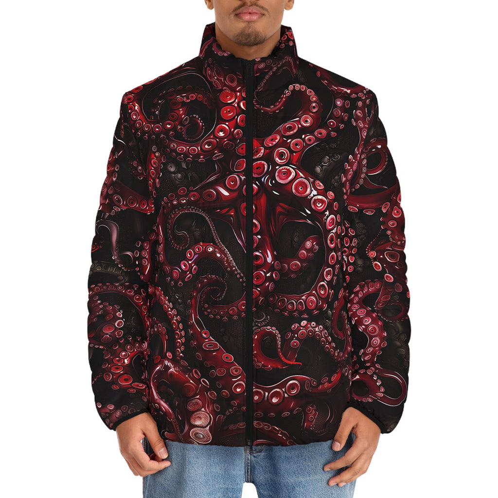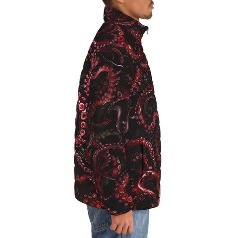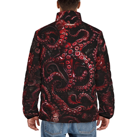 Down-Padded Puffer Jacket Red Octopus Tentacles