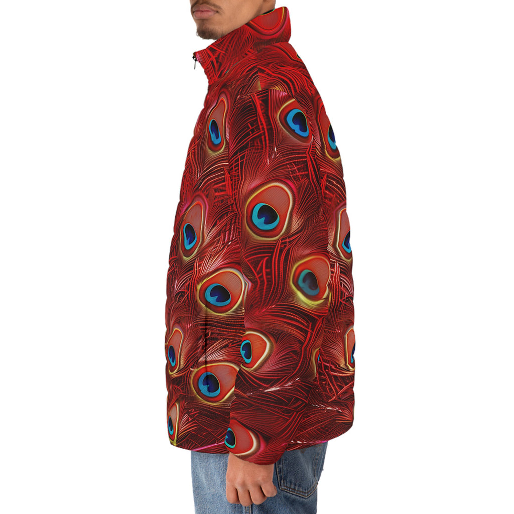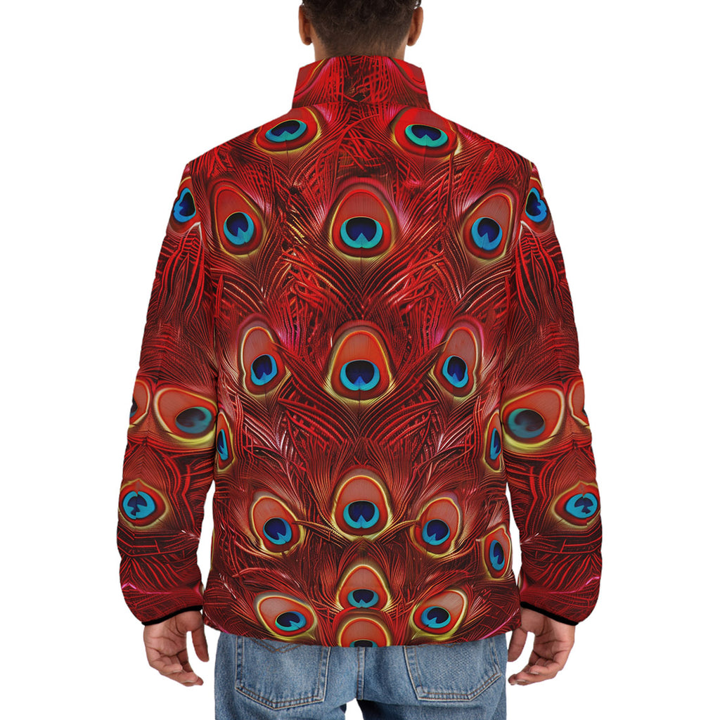 Down-Padded Puffer Jacket Red Peacock Feathers