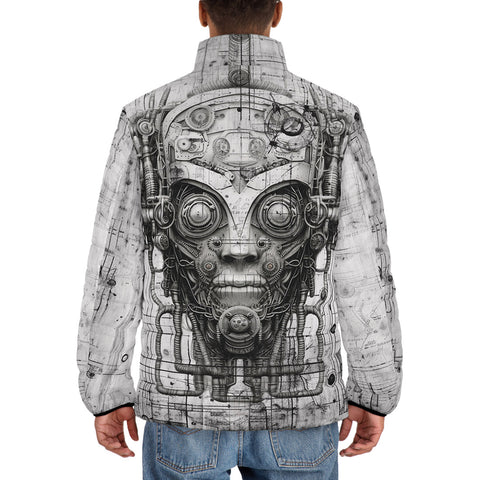 Down-Padded Puffer Jacket Robot Head Pencil Drawing