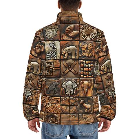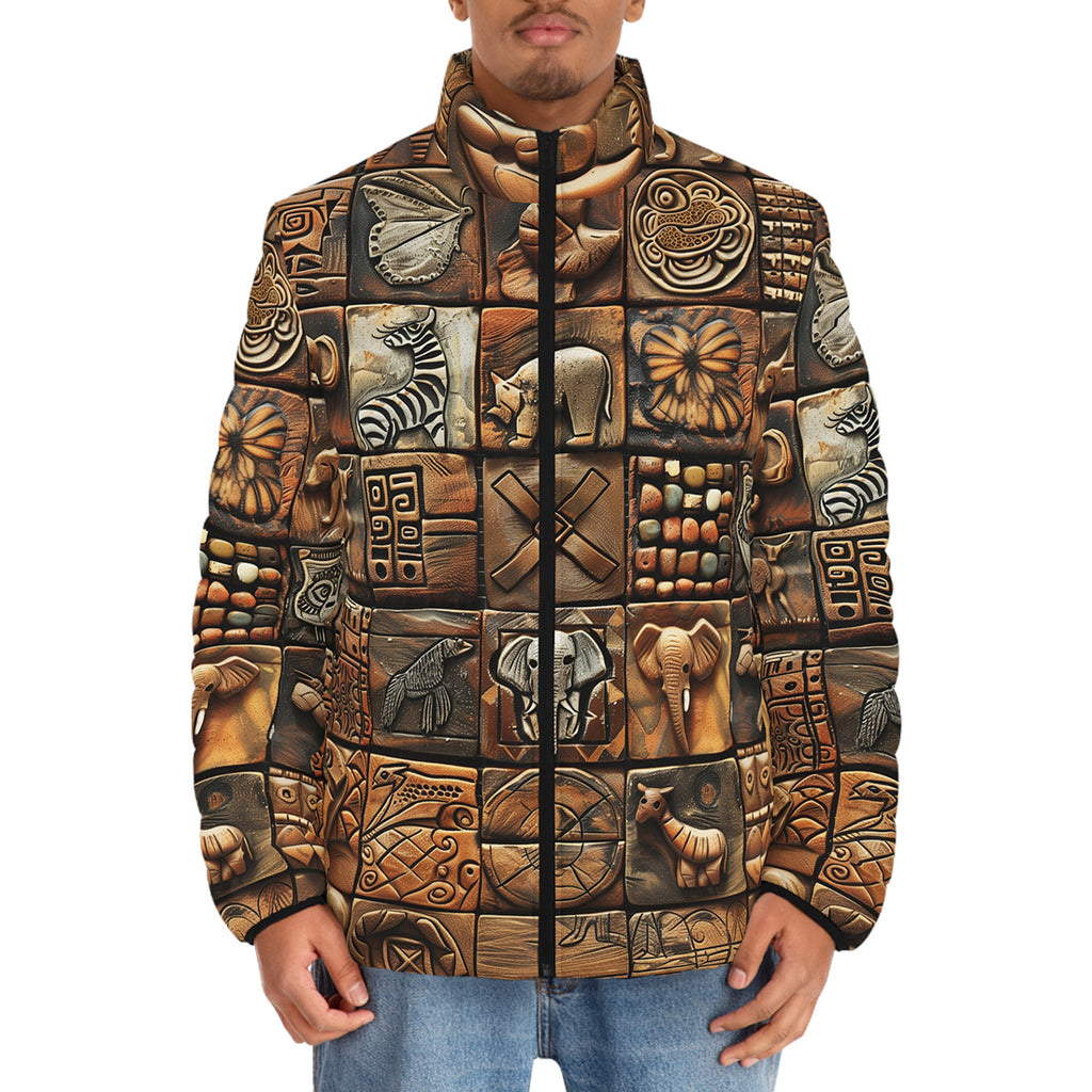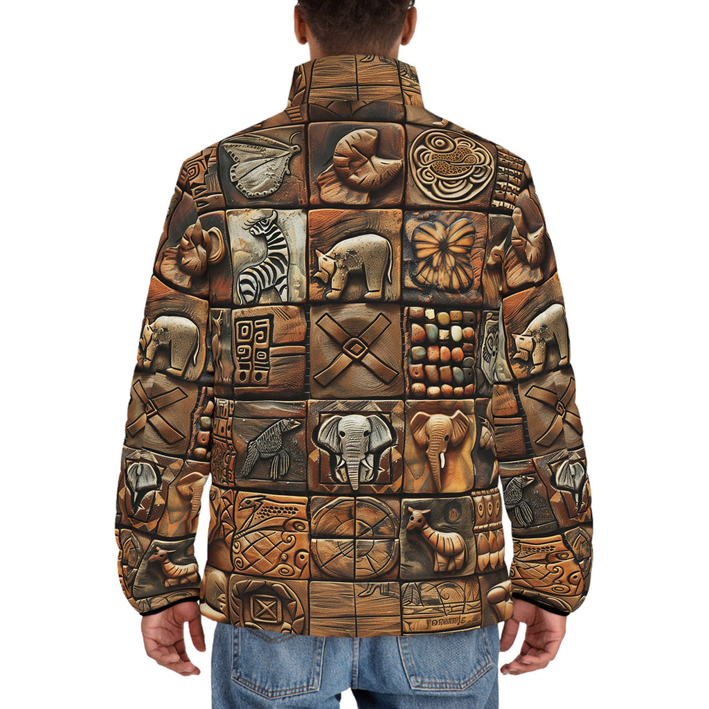Down-Padded Puffer Jacket Various Tribal Motifs Tile