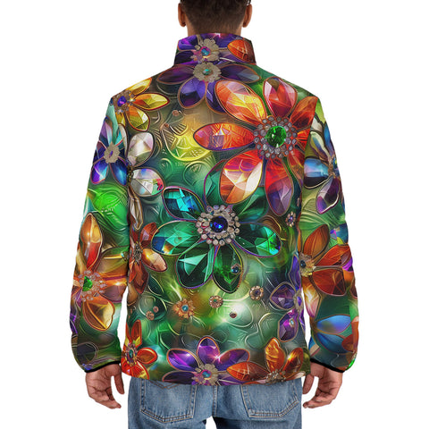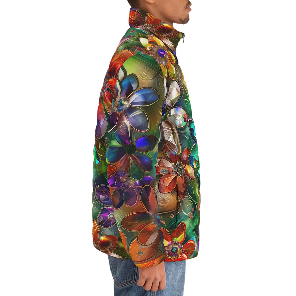 Down-Padded Puffer Jacket Vibrant Colors Crystal Flowers