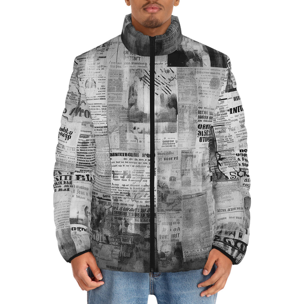 Down-Padded Puffer Jacket Vintage Newspaper