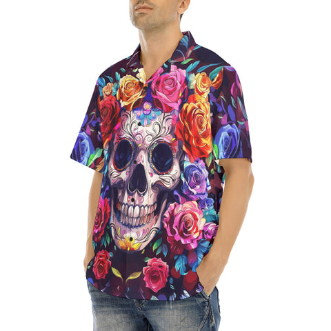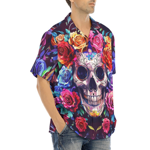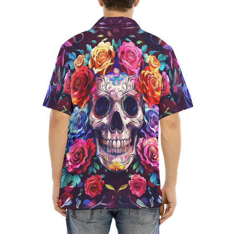 Hawaiian Shirt Intricate Skull Surrounded Vibrant Roses