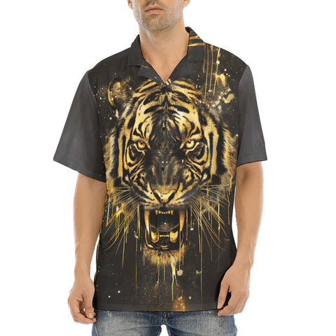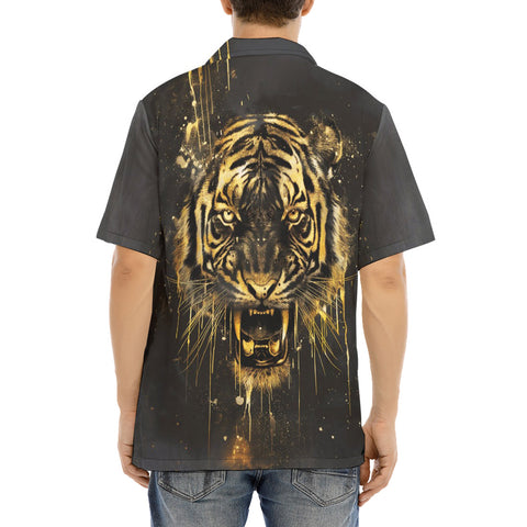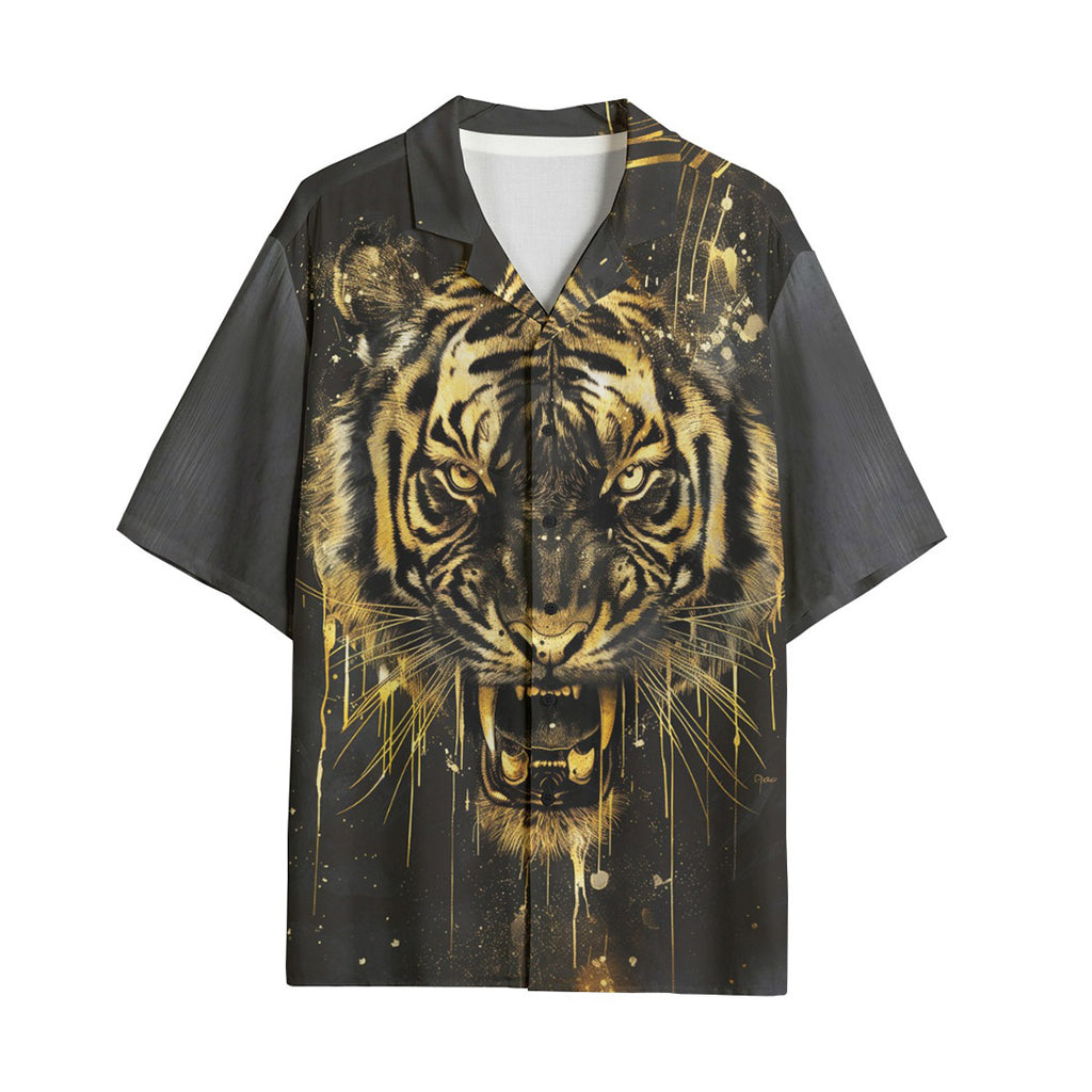 Hawaiian Shirt Tiger Head Gold Dripping Paint