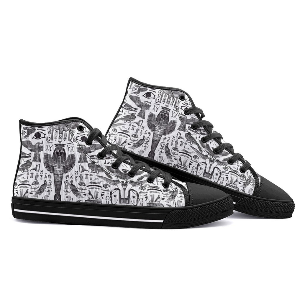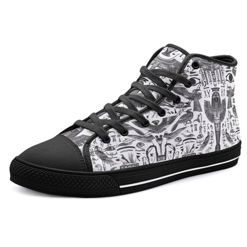High-Top Canvas Shoes Ancient Egyptian Symbols and Elements