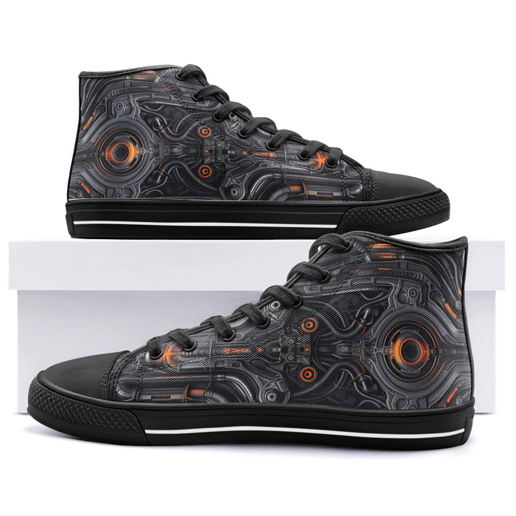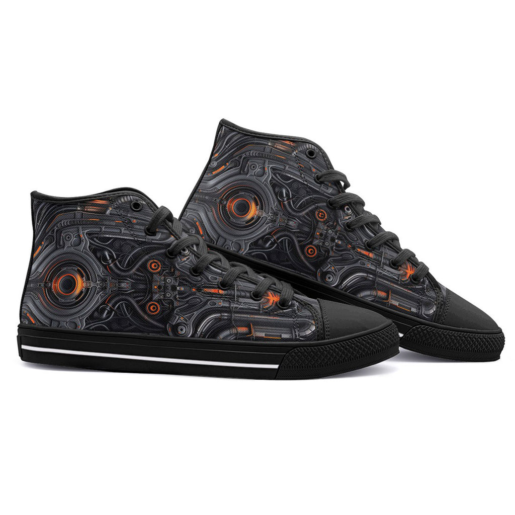 High-Top Canvas Shoes Biomechanical Style Artwork