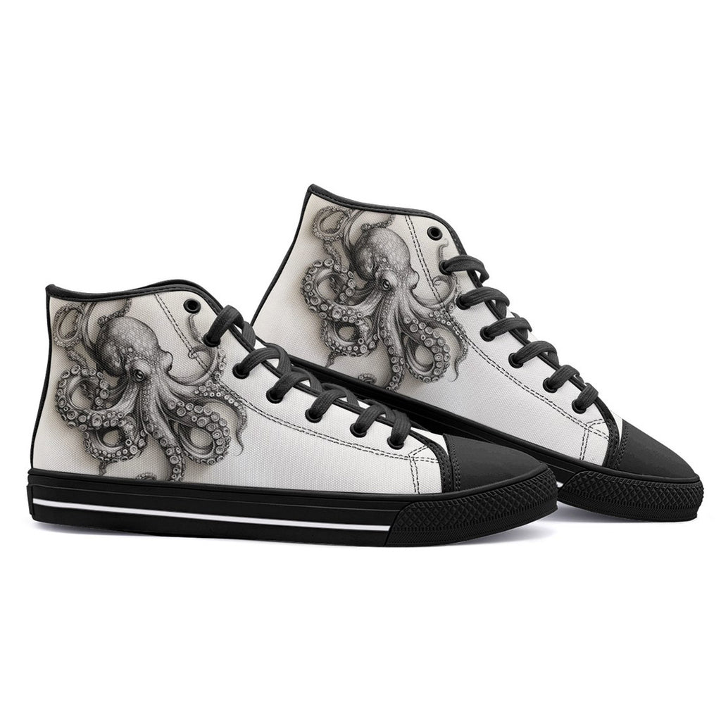 High-Top Canvas Shoes Black and White Drawing Octopus