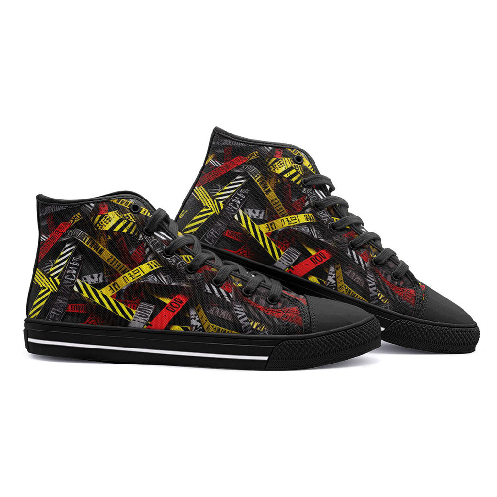 High-Top Canvas Shoes Caution Tapes Abstraction