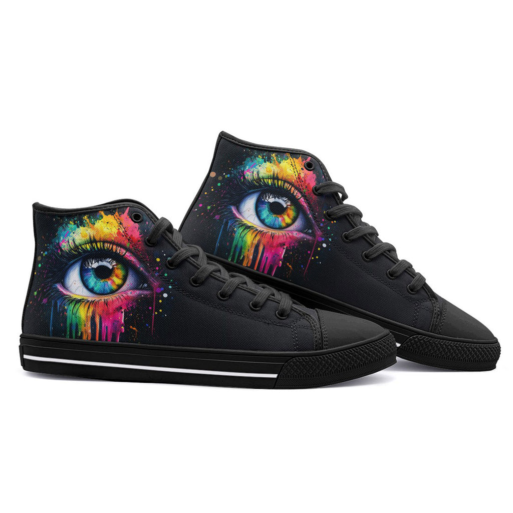 High-Top Canvas Shoes Colorful Eye with Rainbow Paint Dripping