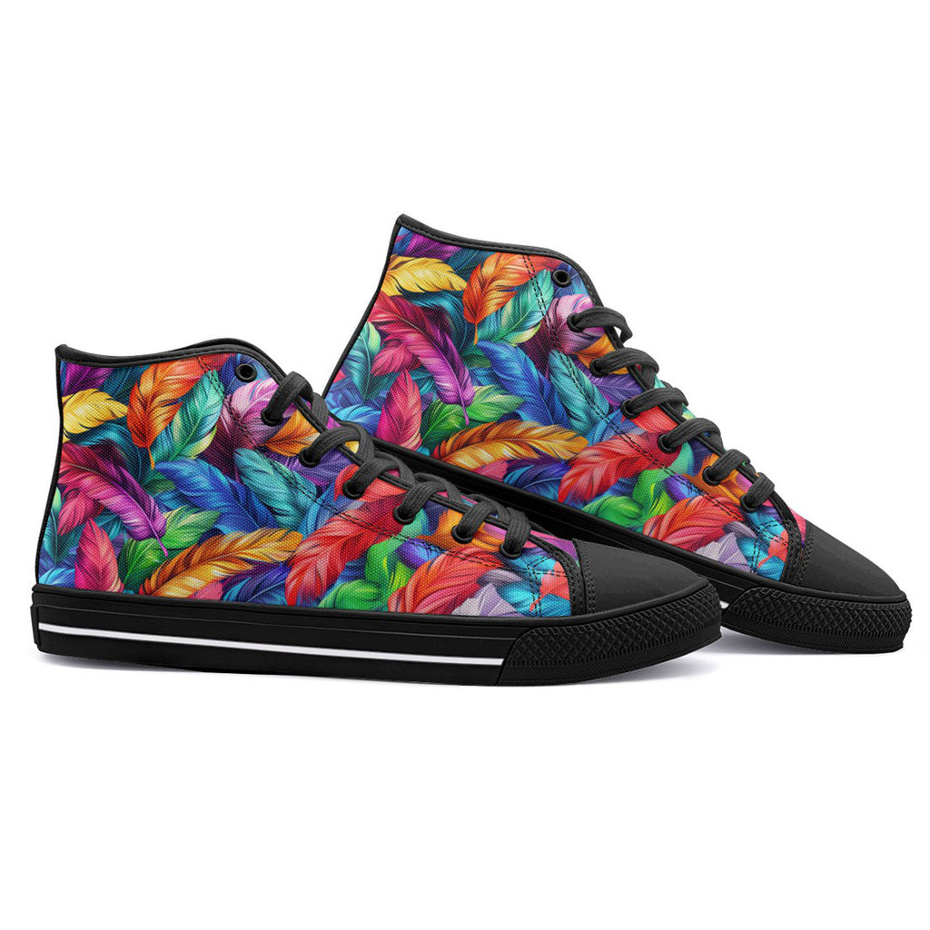 High-Top Canvas Shoes Colorful Feathers Abstraction