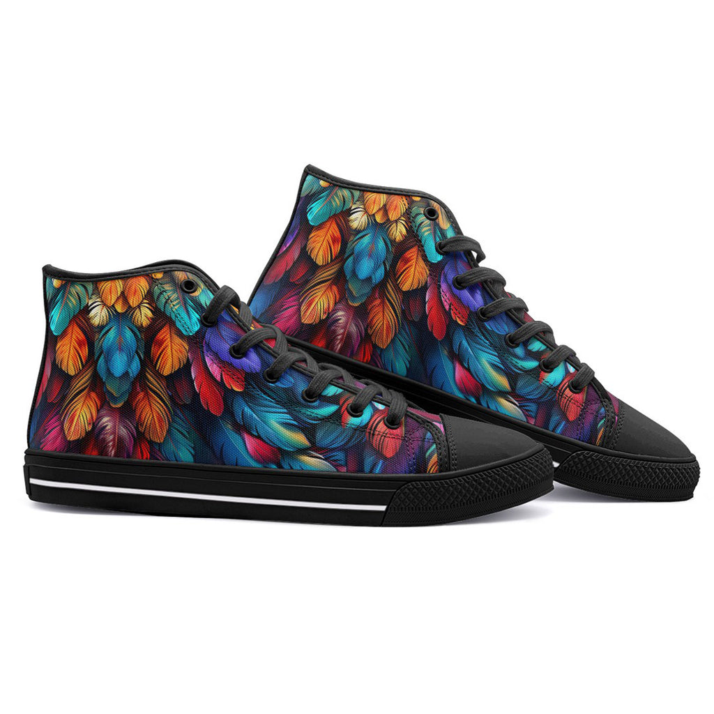 High-Top Canvas Shoes Colorful Vibrant Feathers